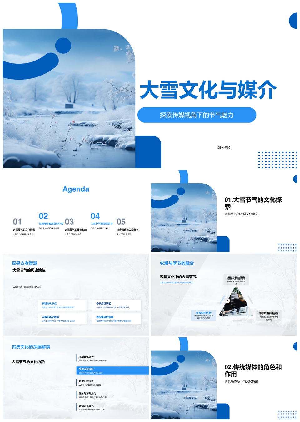 大雪节气媒介传播农耕文化冰雪旅游影响认知PPT模板推荐