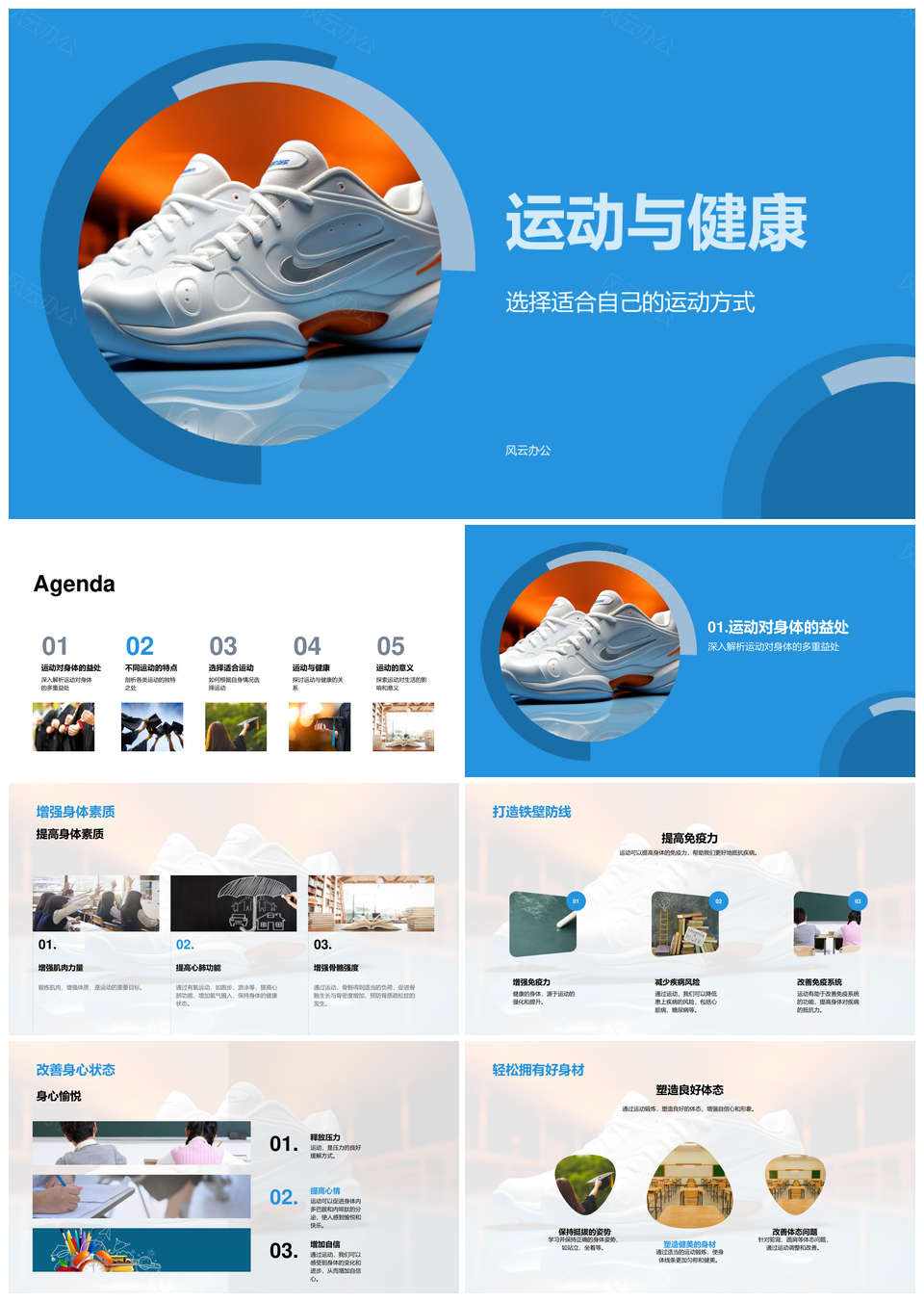 风云办公提供的科学运动强体质增免疫促健康PPT模板,下载格式为pptx,一共33页,作品中文字及图均可以修改和编辑,图片更改请在作品中右键图片并更换,文字修改请直接点击文字进行修改。