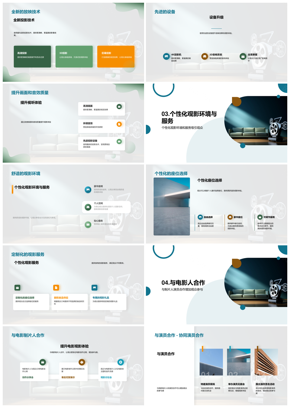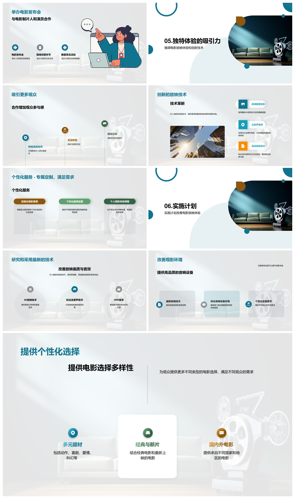 这是一张电影放映技术创新设备升级重塑观众体验PPT模板,包含电影、放映技术、创新设备、升级、重塑、观众体验等主题内容,也可用作电影放映技术创新设备升级、放映技术创新设备升级重塑、创新设备升级重塑观众体验、电影放映技术创新设备、放映技术创新设备升级、设备升级重塑观众体验、电影放映技术创新、放映技术设备升级、创新设备升级重塑、设备升级重塑观众、升级重塑观众体验、电影放映技术、放映技术创新、设备升级重塑、重塑观众体验等PPT场景使用。 风云办公提供的电影放映技术创新设备升级重塑观众体验PPT模板,下载格式为pptx,一共27页,作品中文字及图均可以修改和编辑,图片更改请在作品中右键图片并更换,文字修改请直接点击文字进行修改。