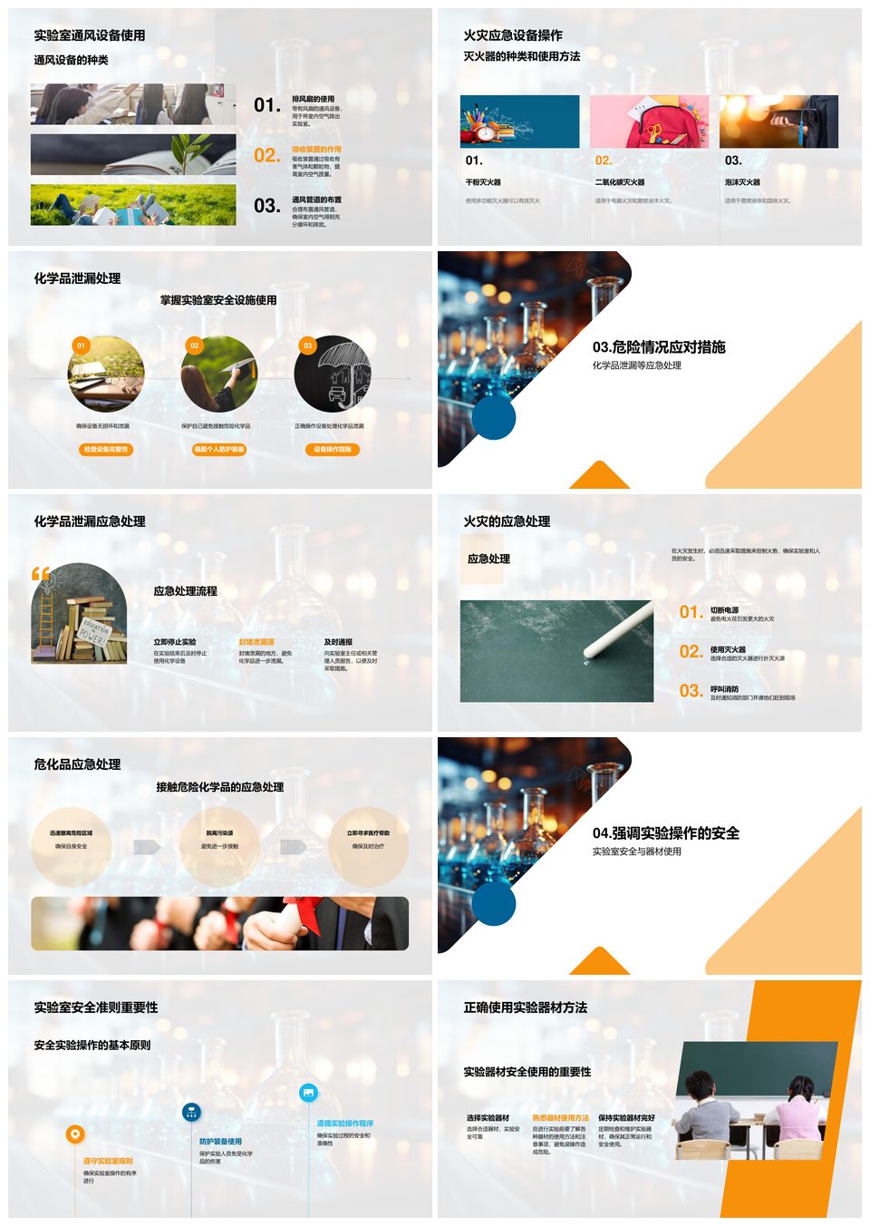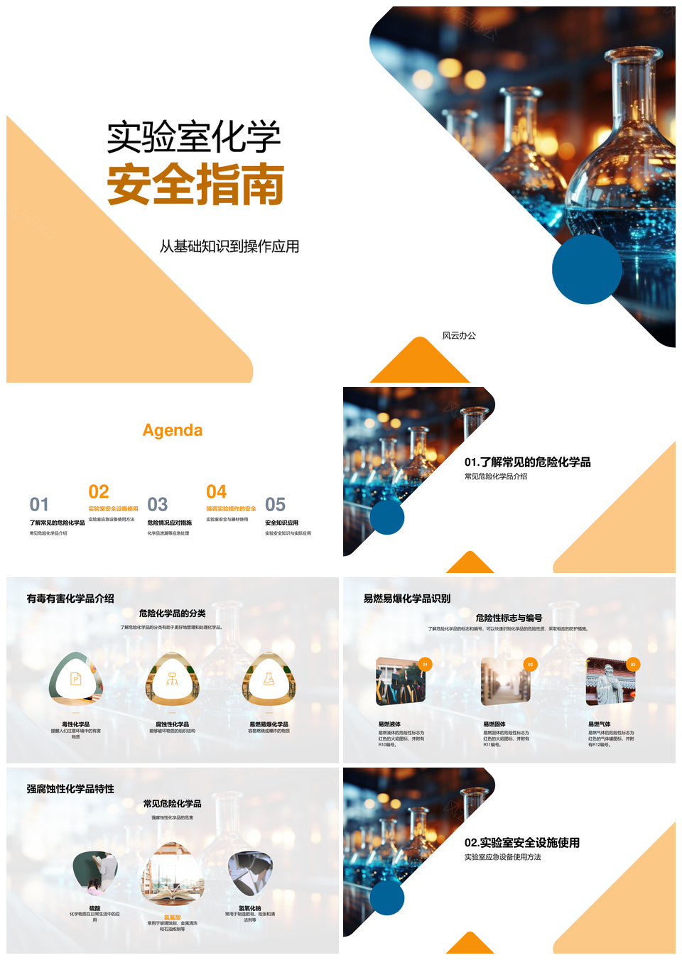 风云办公提供的实验室危化品安全与应急设施指南PPT模板,下载格式为pptx,一共23页,作品中文字及图均可以修改和编辑,图片更改请在作品中右键图片并更换,文字修改请直接点击文字进行修改。