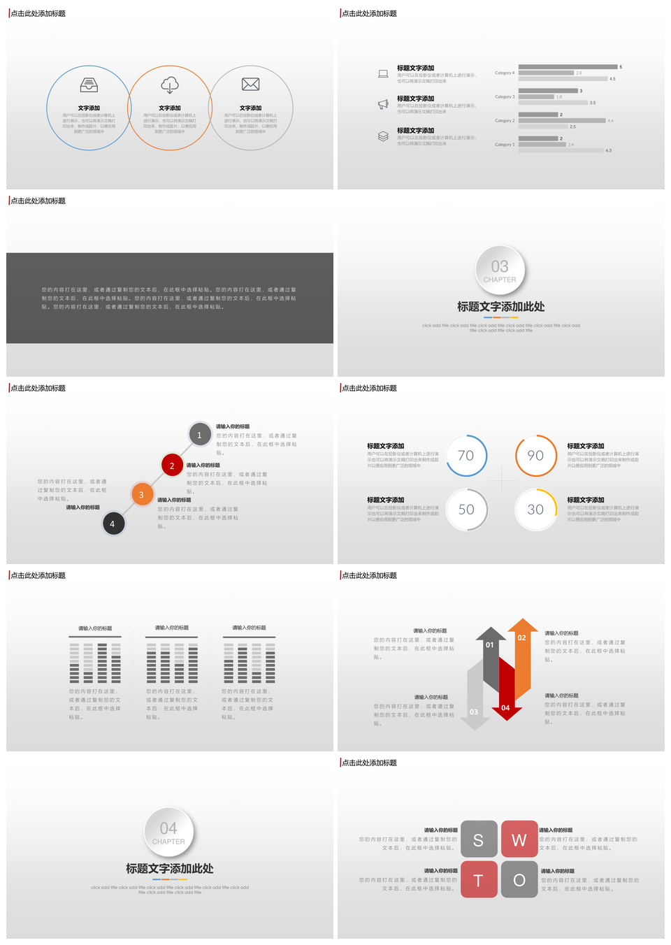 白色灰色工作总结计划极简约风商务风工作汇报PPT模板