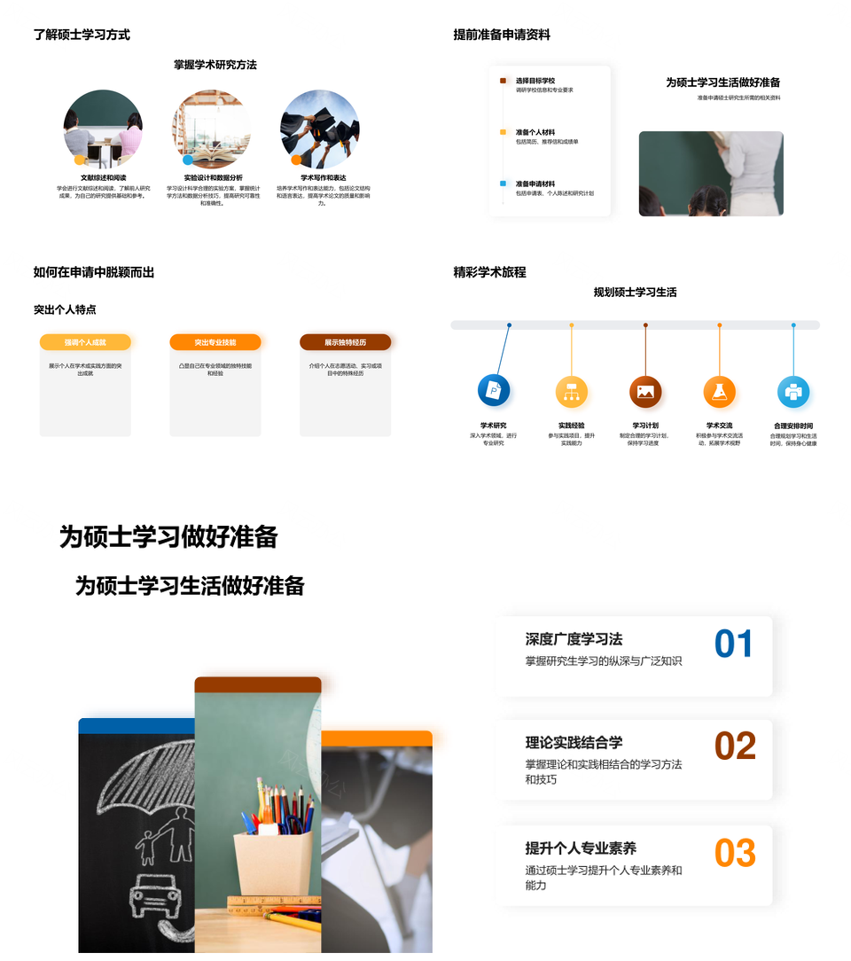 风云办公提供的硕士申请专业素养学习与职业规划PPT模板,下载格式为pptx,一共33页,作品中文字及图均可以修改和编辑,图片更改请在作品中右键图片并更换,文字修改请直接点击文字进行修改。
