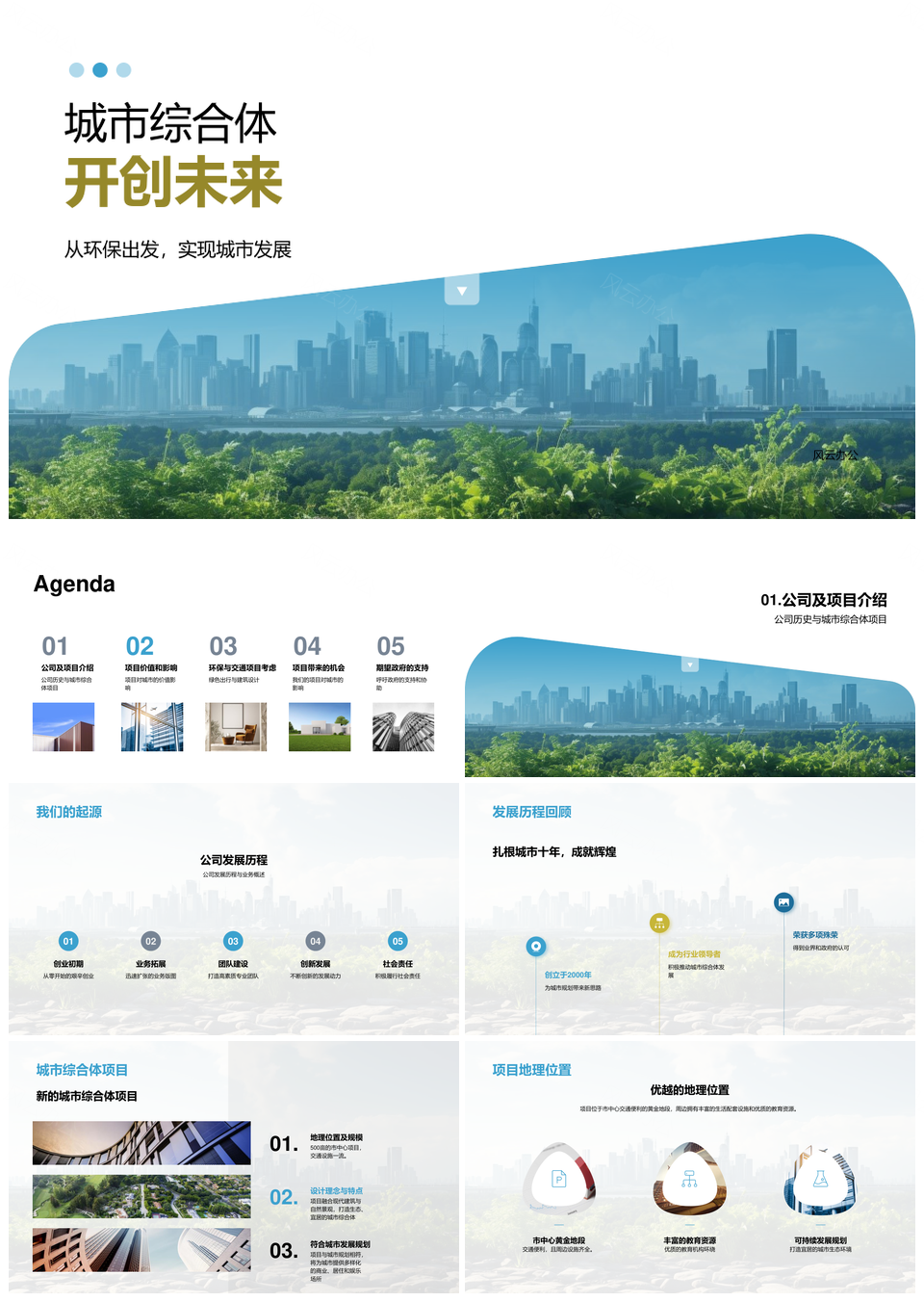 2025城市综合体绿色建筑政府支持环保城市发展PPT模板
