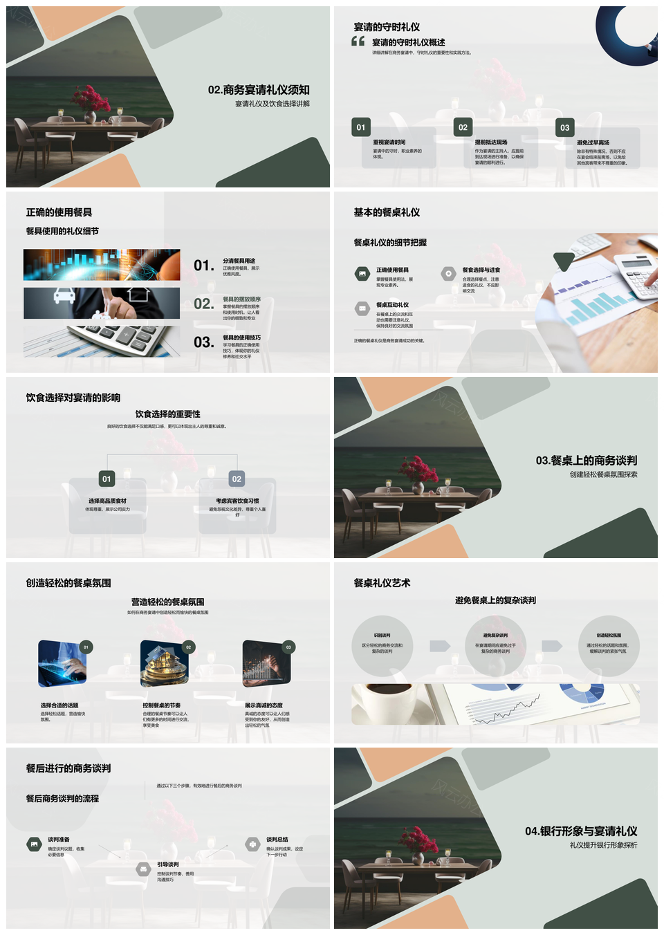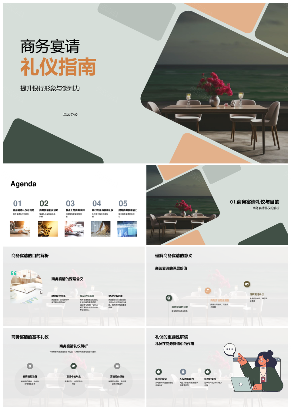 风云办公提供的银行商务宴请礼仪与谈判力指南PPT模板,下载格式为pptx,一共26页,作品中文字及图均可以修改和编辑,图片更改请在作品中右键图片并更换,文字修改请直接点击文字进行修改。