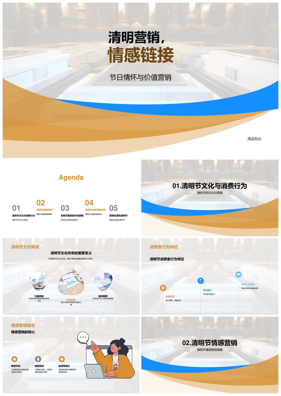 风云办公提供的清明营销情感链接文化价值情怀PPT模板,下载格式为pptx,一共23页,作品中文字及图均可以修改和编辑,图片更改请在作品中右键图片并更换,文字修改请直接点击文字进行修改。