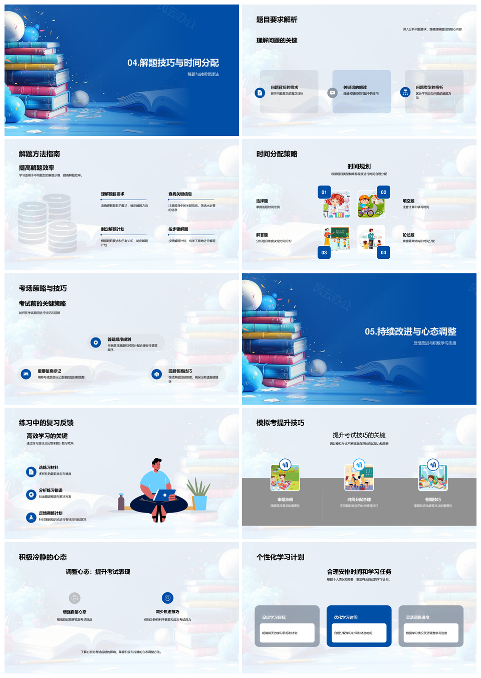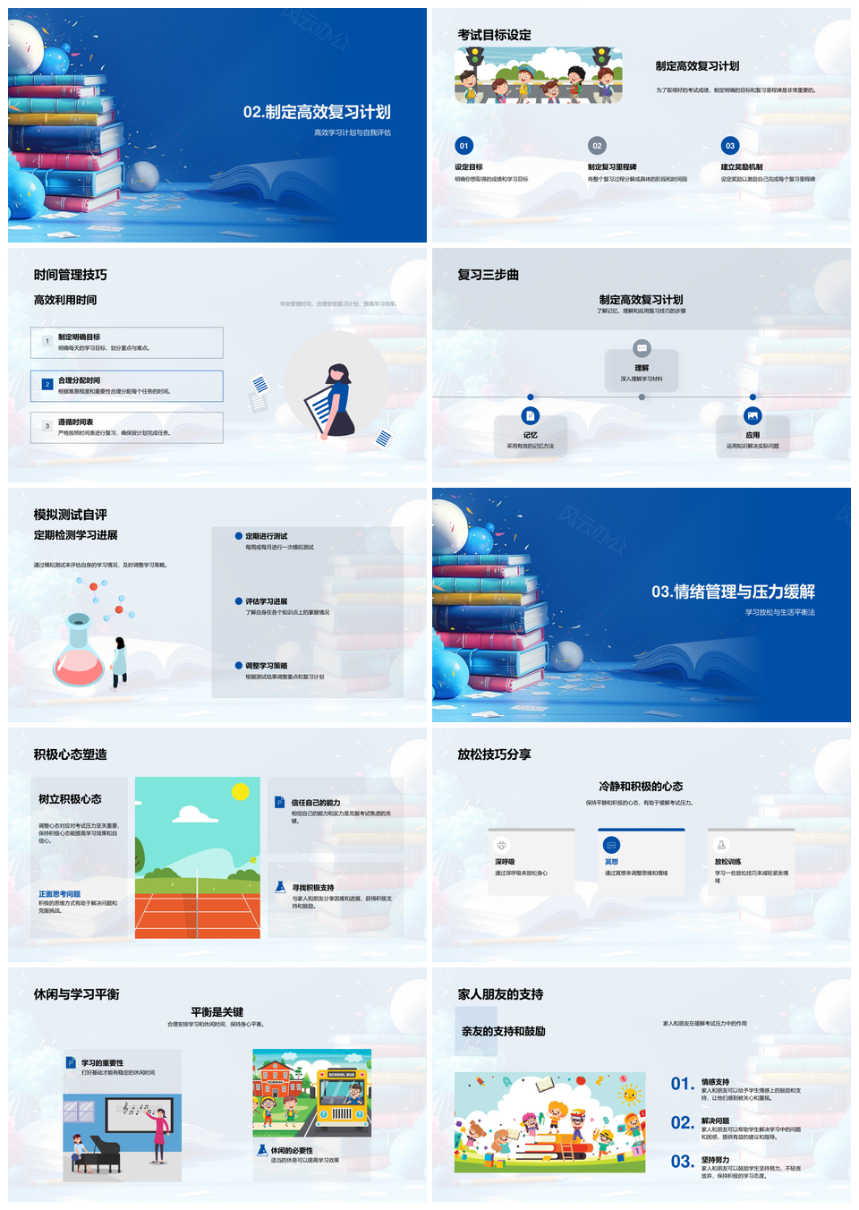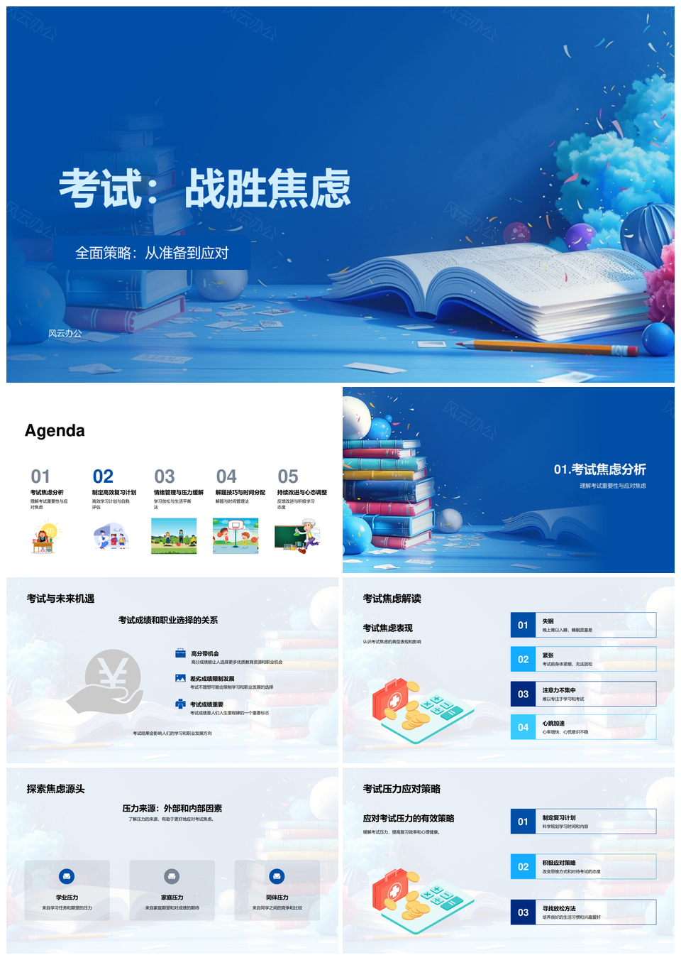 这是一张考试战胜焦虑全面策略复习计划时间管理解题技巧PPT模板,包含考试、战胜、焦虑、全面策略、复习计划、时间管理、解题技巧等主题内容,也可用作考试战胜焦虑全面、战胜焦虑全面策略、焦虑全面策略复习、全面策略复习计划、策略复习计划时间管理、复习计划时间管理解题技巧、考试战胜焦虑、战胜焦虑全面、焦虑全面策略、全面策略复习、策略复习计划、复习计划时间管理、计划时间管理解题技巧、战胜焦虑、全面策略等PPT场景使用。 风云办公提供的考试战胜焦虑全面策略复习计划时间管理解题技巧PPT模板,下载格式为pptx,一共28页,作品中文字及图均可以修改和编辑,图片更改请在作品中右键图片并更换,文字修改请直接点击文字进行修改。