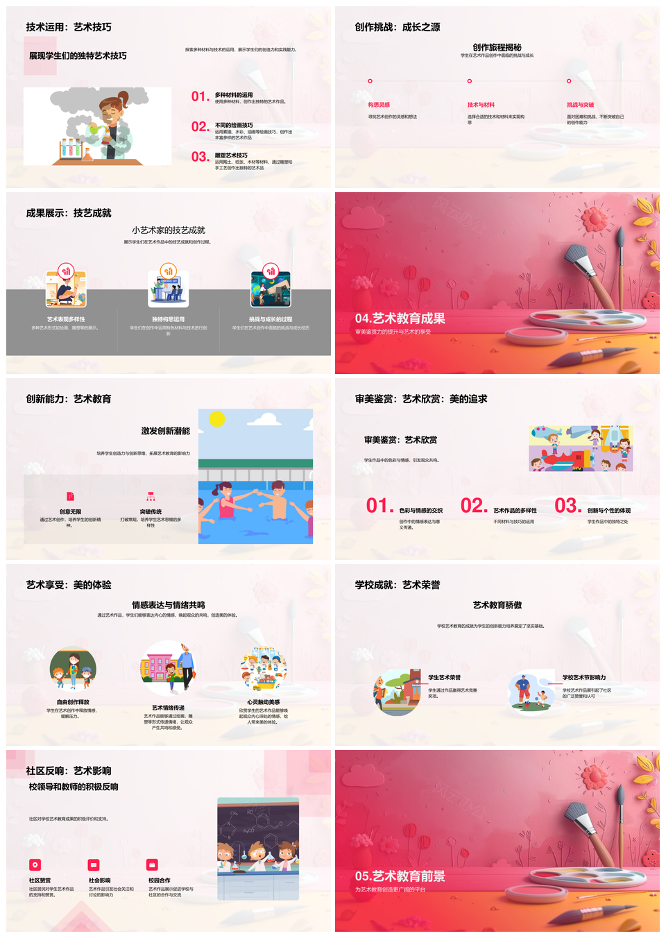 这是一张儿童艺术教育创新力美学思维作品成果展PPT模板,包含儿童、艺术教育、创新力、美学思维、作品、成果展等主题内容,也可用作儿童艺术教育创新力、艺术教育创新力美学、教育创新力美学思维、创新力美学思维作品、美学思维作品成果展、儿童艺术教育、艺术教育创新力、教育创新力美学、创新力美学思维、美学思维作品、思维作品成果展、儿童艺术、艺术教育、教育创新力、美学思维等PPT场景使用。 风云办公提供的儿童艺术教育创新力美学思维作品成果展PPT模板,下载格式为pptx,一共33页,作品中文字及图均可以修改和编辑,图片更改请在作品中右键图片并更换,文字修改请直接点击文字进行修改。