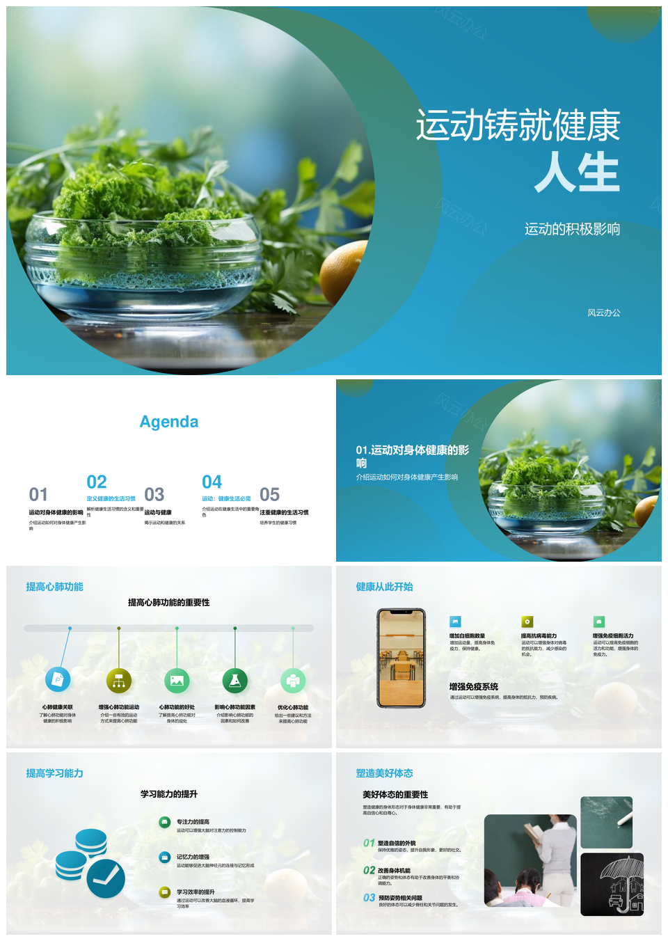 风云办公提供的运动强心肺健免疫优习惯铸健康人生PPT模板,下载格式为pptx,一共33页,作品中文字及图均可以修改和编辑,图片更改请在作品中右键图片并更换,文字修改请直接点击文字进行修改。