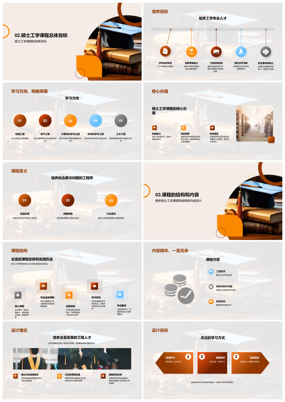 硕士工学发展历程创新工程数学模数结构毕业帽PPT模板推荐