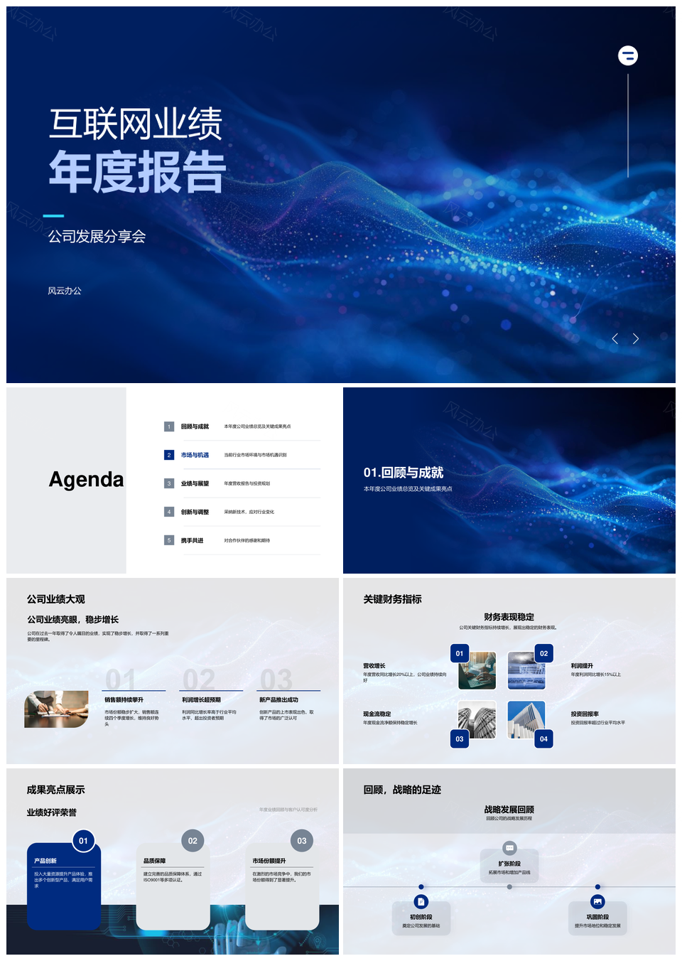 互联网公司年报发展分享会行业市场投资者合作PPT模板推荐
