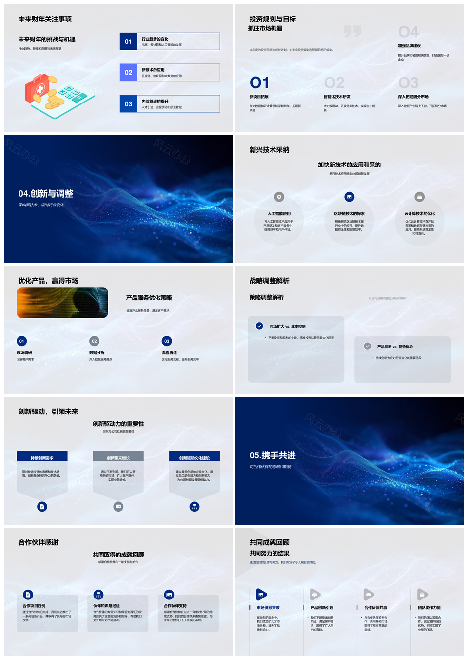 这是一张互联网公司年报发展分享会行业市场投资者合作PPT模板,包含互联网公司、年报、发展、分享会、行业、市场、投资者、合作等主题内容,也可用作互联网公司年报发展分享会、公司年报发展分享会行业、年报发展分享会行业市场、发展分享会行业市场投资者、行业市场投资者合作、互联网公司年报发展、公司年报发展分享会、年报发展分享会行业、发展分享会行业市场、行业市场投资者合作、互联网公司年报、公司年报发展、年报发展分享会、发展分享会行业、公司年报等PPT场景使用。 风云办公提供的互联网公司年报发展分享会行业市场投资者合作PPT模板,下载格式为pptx,一共30页,作品中文字及图均可以修改和编辑,图片更改请在作品中右键图片并更换,文字修改请直接点击文字进行修改。