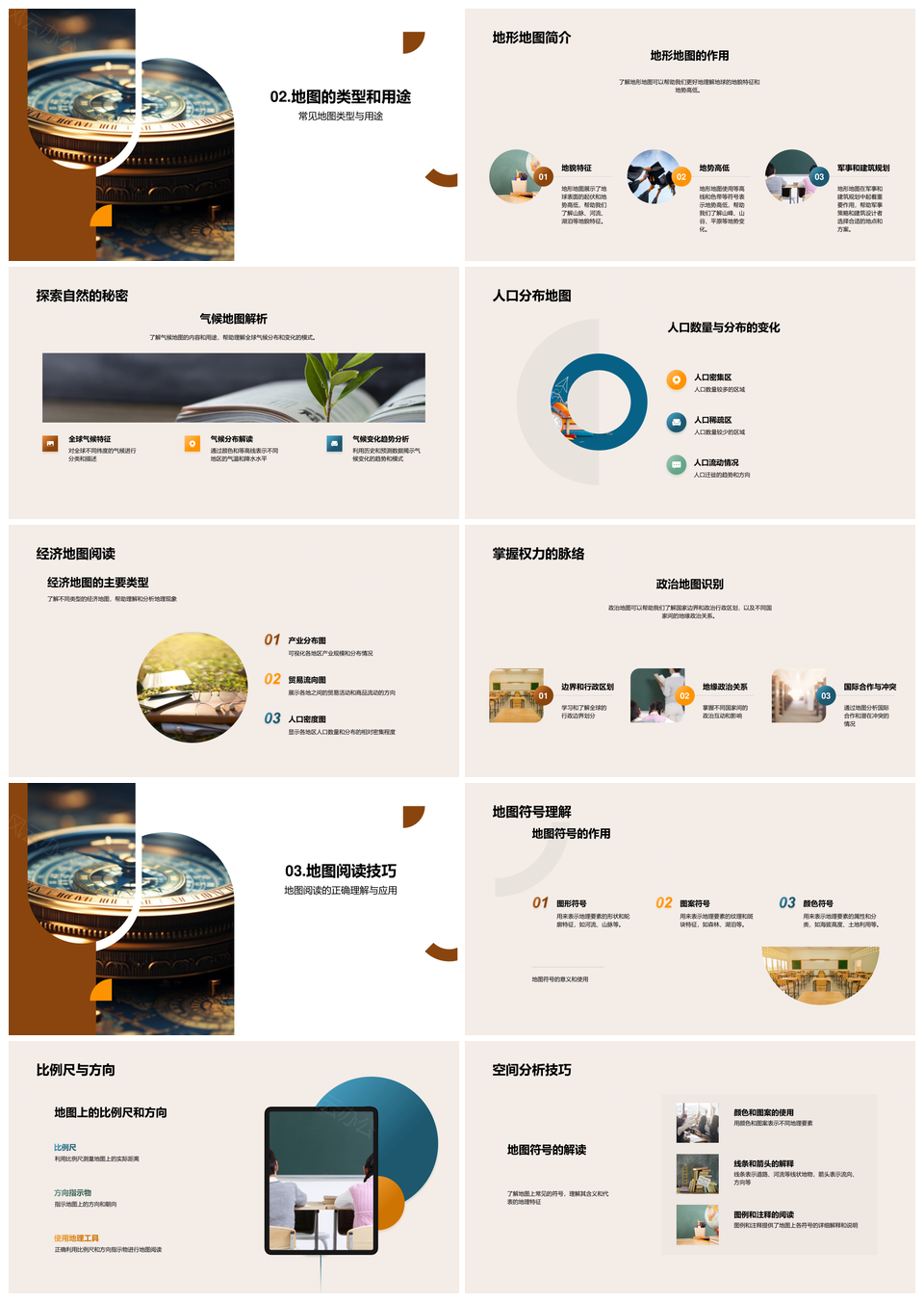 地图解读艺术图素类型符号比例方向空间推理复古指南针PPT模板推荐