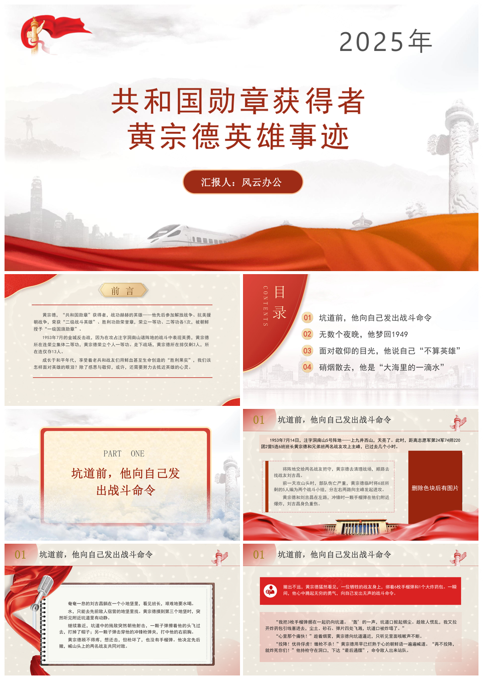 这是一张2025共和国勋章二级战斗英雄黄宗德英雄事迹PPT课件,包含2025共和国勋章、二级战斗英雄、黄宗德、英雄事迹、课件等主题内容,也可用作2025共和国勋章二级战斗英雄、共和国勋章二级战斗英雄黄宗德、二级战斗英雄黄宗德英雄事迹、战斗英雄黄宗德英雄事迹PPT课件、黄宗德英雄事迹PPT课件、2025共和国勋章战斗英雄黄宗德、共和国勋章战斗英雄黄宗德英雄、战斗英雄黄宗德英雄事迹PPT、共和国勋章二级英雄事迹PPT、2025共和国勋章黄宗德事迹、共和国勋章黄宗德英雄事迹PPT、2025二级战斗英雄黄宗德、共和国勋章战斗英雄事迹、二级战斗英雄英雄事迹、黄宗德事迹PPT课件等PPT场景使用。 风云办公提供的2025共和国勋章二级战斗英雄黄宗德英雄事迹PPT课件,下载格式为pptx,一共23页,作品中文字及图均可以修改和编辑,图片更改请在作品中右键图片并更换,文字修改请直接点击文字进行修改。