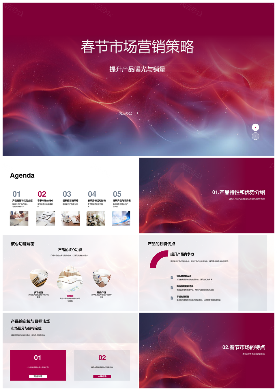 风云办公提供的春节消费市场产品曝光与销量策略PPT模板,下载格式为pptx,一共23页,作品中文字及图均可以修改和编辑,图片更改请在作品中右键图片并更换,文字修改请直接点击文字进行修改。