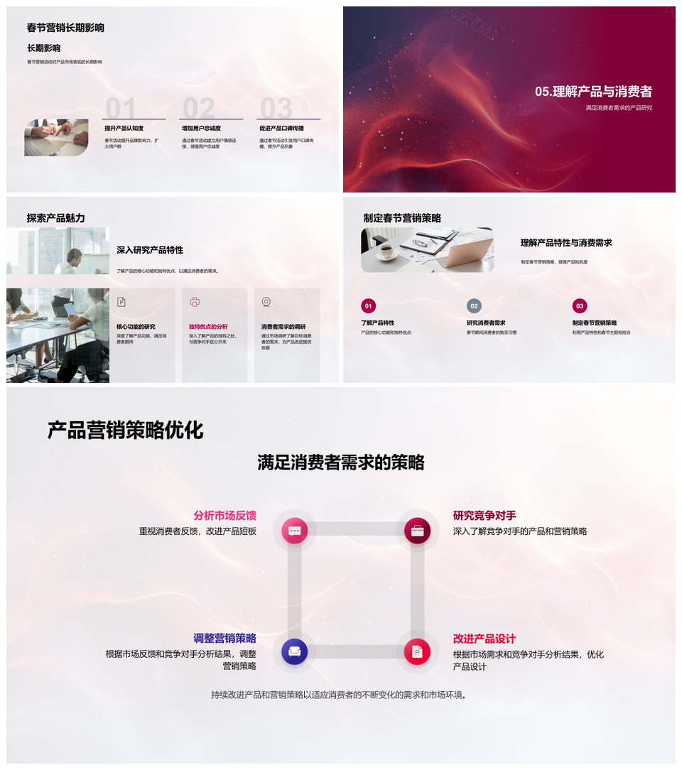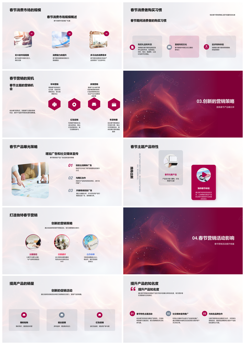 这是一张春节消费市场产品曝光与销量策略PPT模板,包含春节、消费市场、产品、曝光、销量、策略等主题内容,也可用作春节消费市场产品曝光、消费市场产品曝光销量、市场产品曝光销量策略、春节消费市场产品、消费市场曝光销量策略、市场曝光销量策略春节、春节消费产品曝光、消费产品曝光销量策略、春节市场产品销量、市场产品销量策略、春节消费销量策略、消费市场产品策略、产品曝光销量策略、市场产品曝光销量、消费市场产品销量等PPT场景使用。