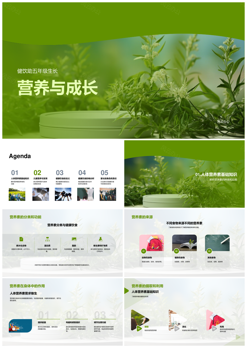 这款模板以清新森系风格为基调,主色采用浅绿至墨绿的层次渐变,结合草绿点缀,自然治愈。版式融入手绘植物、灵动线条、萌趣插画等元素,营造轻盈童趣感,同时保持专业调性。图表与文本区域采用简洁模块化设计,逻辑清晰,替换便捷,适用于教育、环保、文创类提案及工作汇报。低饱和配色与留白比例优化视觉舒适度,兼顾年轻化表达与职场严谨需求,助你高效呈现内容深度。