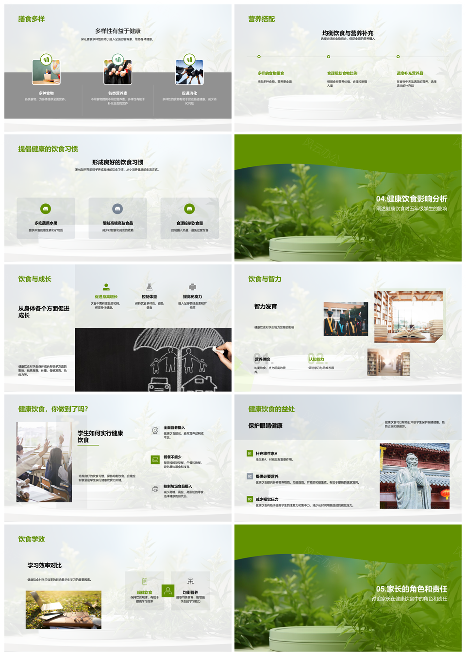 五年级儿童成长营养健康膳食计划PPT模板推荐