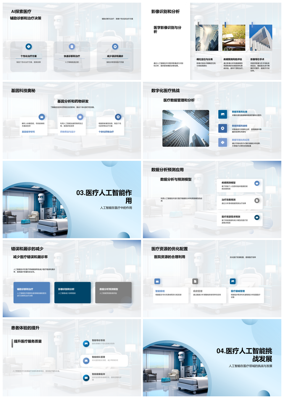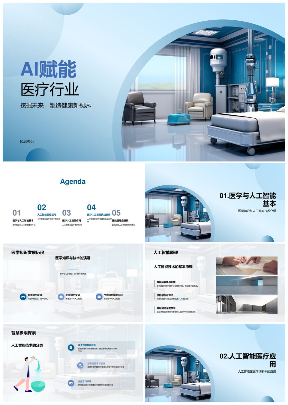 风云办公提供的人工智能医疗应用赋能医学专家技术PPT模板,下载格式为pptx,一共26页,作品中文字及图均可以修改和编辑,图片更改请在作品中右键图片并更换,文字修改请直接点击文字进行修改。