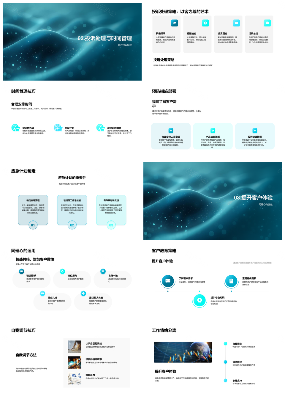 这是一张柜员服务礼仪高效沟通投诉处理时间应急教程PPT模板,包含柜员、服务、礼仪、高效、沟通、投诉、处理、时间、应急、教程等主题内容,也可用作柜员服务礼仪高效、服务礼仪高效沟通、高效沟通投诉处理、投诉处理时间应急、处理时间应急教程、柜员服务礼仪、服务礼仪高效、高效沟通投诉、沟通投诉处理、投诉处理时间、处理时间应急、时间应急教程、柜员服务、服务礼仪、高效沟通等PPT场景使用。 风云办公提供的柜员服务礼仪高效沟通投诉处理时间应急教程PPT模板,下载格式为pptx,一共28页,作品中文字及图均可以修改和编辑,图片更改请在作品中右键图片并更换,文字修改请直接点击文字进行修改。