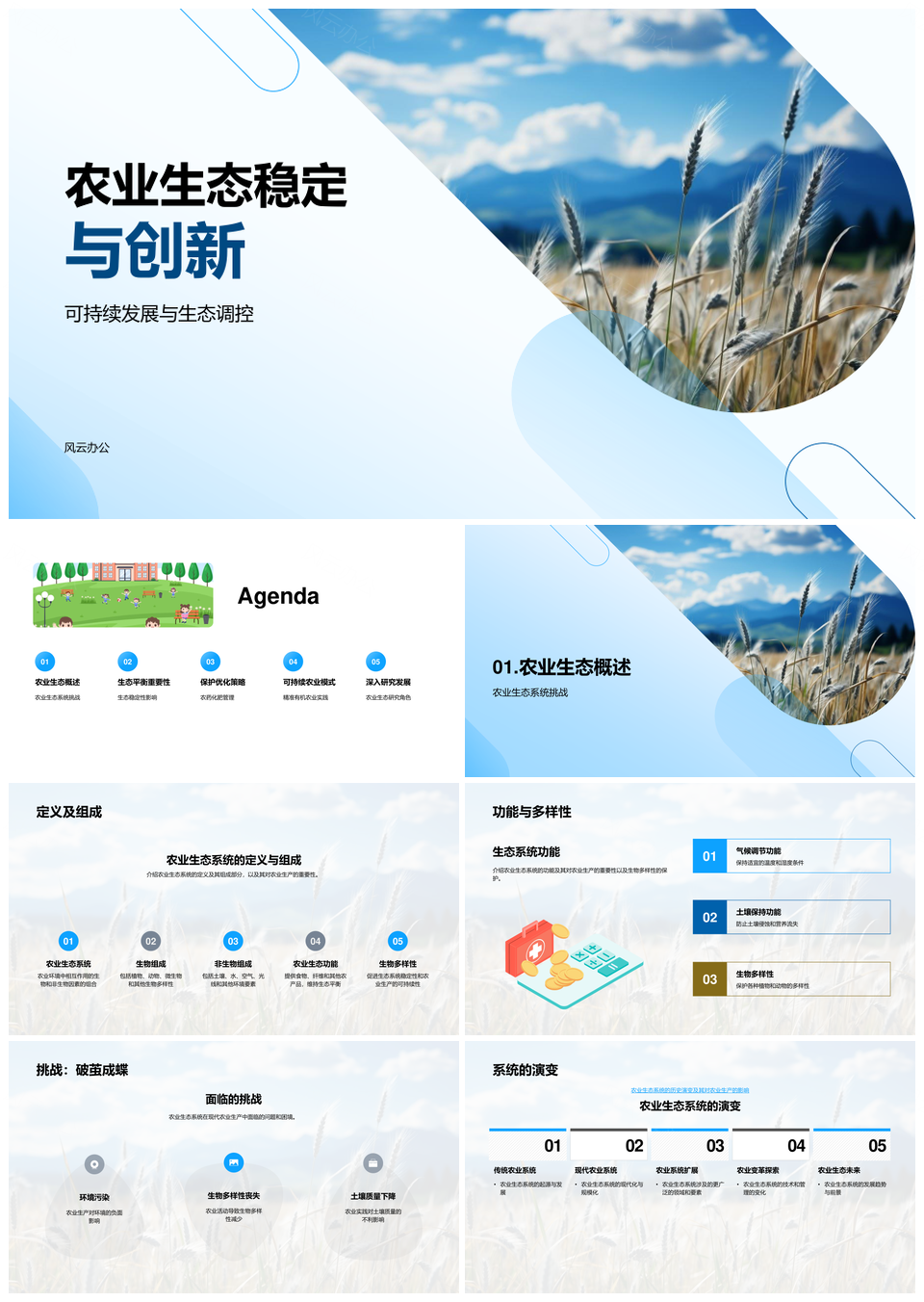 风云办公提供的农业生态稳定创新与可持续发展PPT模板,下载格式为pptx,一共33页,作品中文字及图均可以修改和编辑,图片更改请在作品中右键图片并更换,文字修改请直接点击文字进行修改。