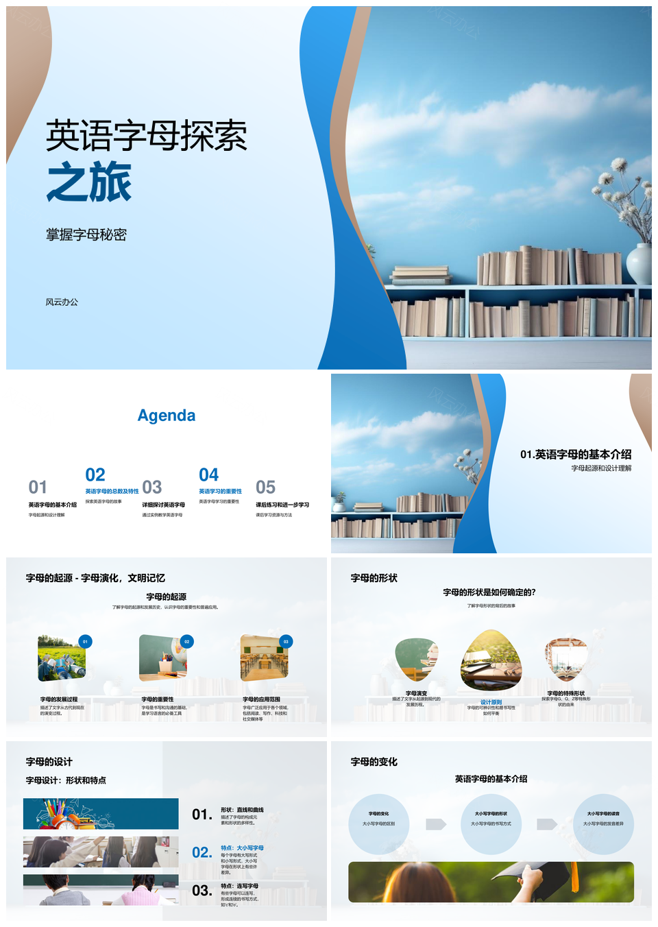 风云办公提供的英语字母起源设计形音书写应用入门PPT模板,下载格式为pptx,一共33页,作品中文字及图均可以修改和编辑,图片更改请在作品中右键图片并更换,文字修改请直接点击文字进行修改。