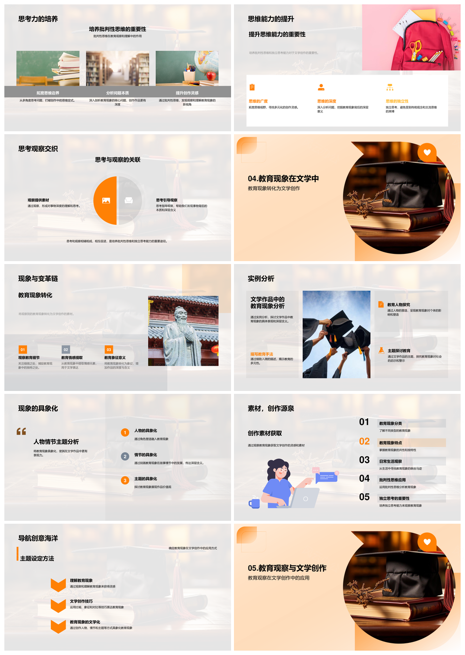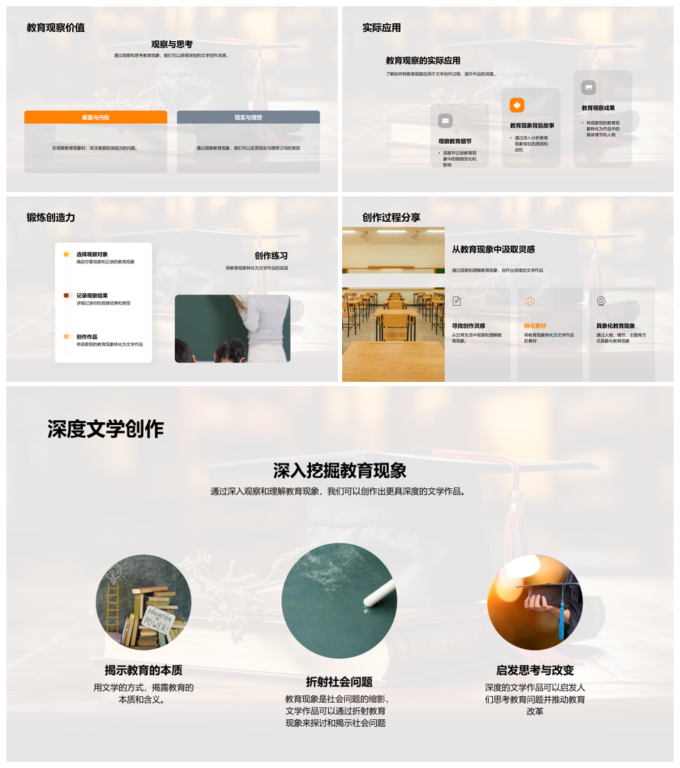 风云办公提供的文学教育现象与创作批判思维观察PPT模板,下载格式为pptx,一共33页,作品中文字及图均可以修改和编辑,图片更改请在作品中右键图片并更换,文字修改请直接点击文字进行修改。