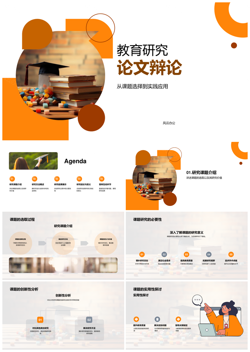 教育研究论文答辩课题方法与实践应用PPT模板推荐