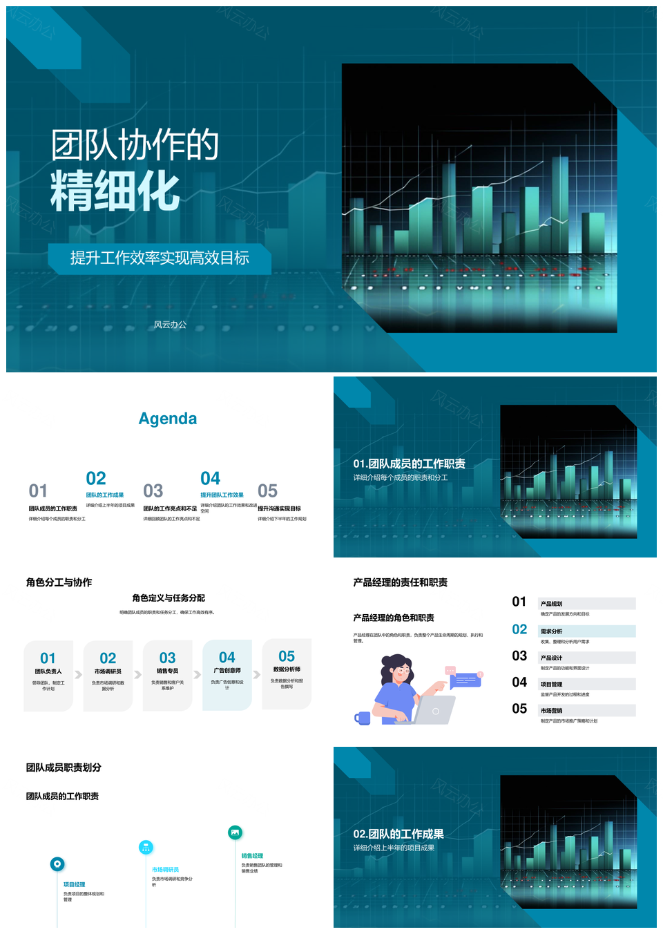 团队协作提效产品经理市场营销共促关键目标PPT模板推荐