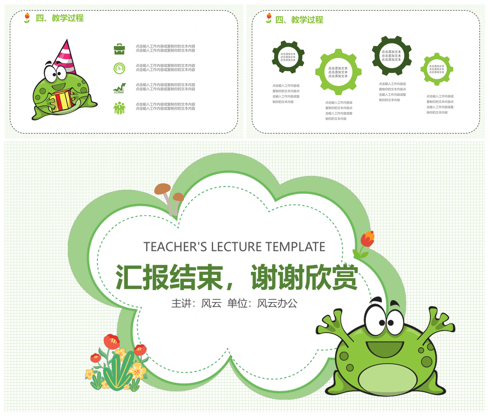 绿色教学课件青蛙主题教育教学PPT模板推荐