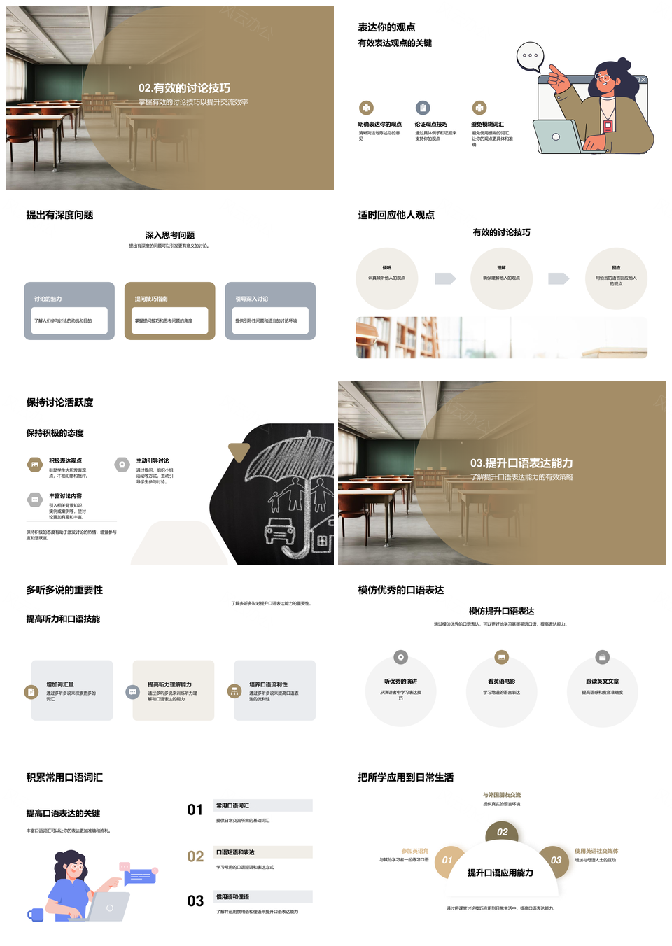风云办公提供的课堂讨论提升英语口语交际策略PPT模板,下载格式为pptx,一共28页,作品中文字及图均可以修改和编辑,图片更改请在作品中右键图片并更换,文字修改请直接点击文字进行修改。