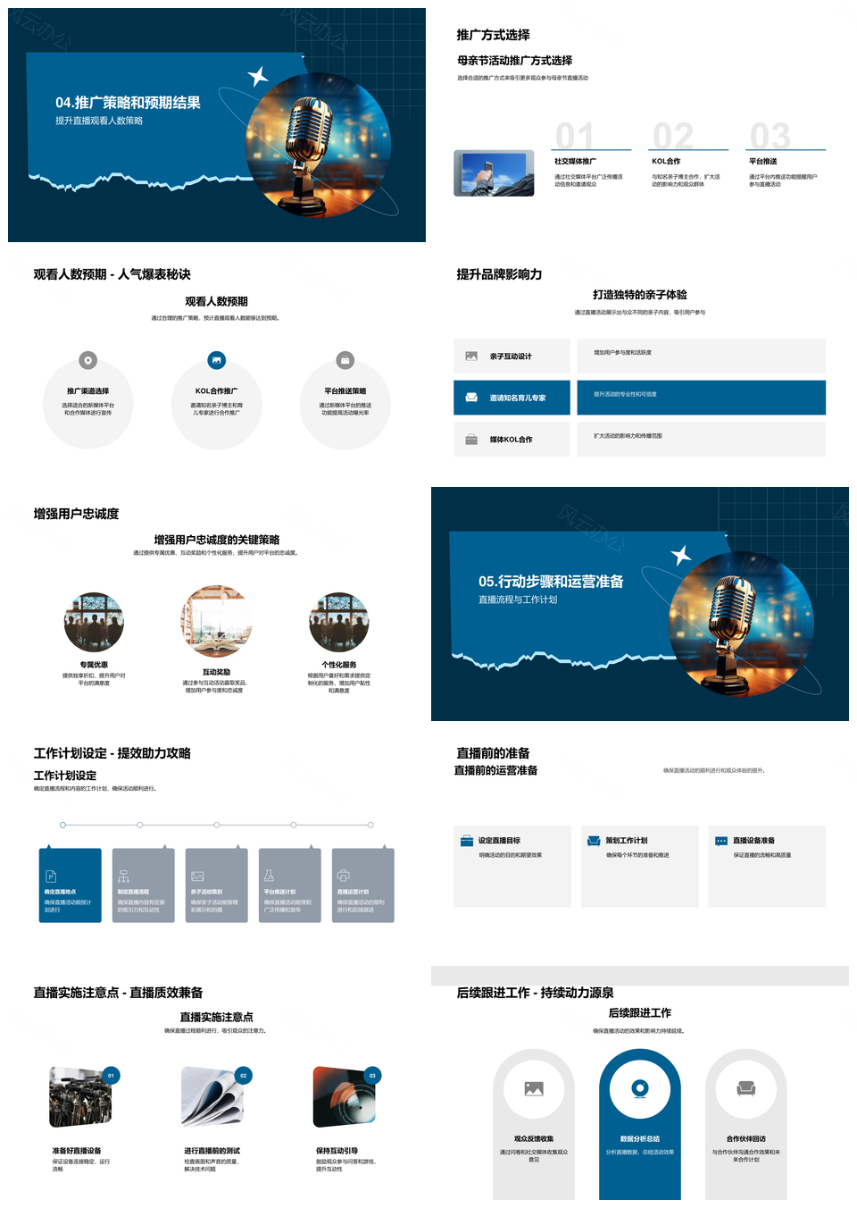 风云办公提供的母亲节亲子直播运营策略全攻略PPT模板,下载格式为pptx,一共28页,作品中文字及图均可以修改和编辑,图片更改请在作品中右键图片并更换,文字修改请直接点击文字进行修改。