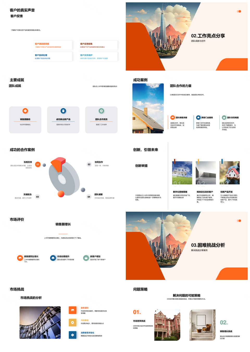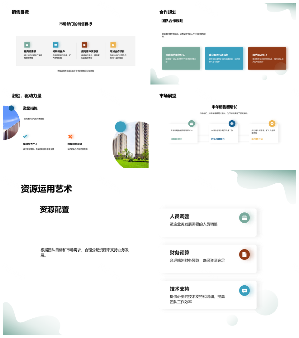 这是一张房地产团队协作半年业绩增长摩天大楼案例PPT模板,包含房地产团队、协作、半年、业绩增长、摩天大楼、案例等主题内容,也可用作房地产团队协作半年业绩增长摩天大楼案例、房地产团队协作业绩增长摩天大楼案例、房地产团队协作半年业绩增长、团队协作半年业绩增长摩天大楼、半年业绩增长摩天大楼案例、房地产团队协作半年、团队协作半年业绩增长、半年业绩增长摩天大楼、业绩增长摩天大楼案例、房地产团队协作、团队协作半年、半年业绩增长、业绩增长摩天大楼、摩天大楼案例、房地产案例等PPT场景使用。 风云办公提供的房地产团队协作半年业绩增长摩天大楼案例PPT模板,下载格式为pptx,一共33页,作品中文字及图均可以修改和编辑,图片更改请在作品中右键图片并更换,文字修改请直接点击文字进行修改。