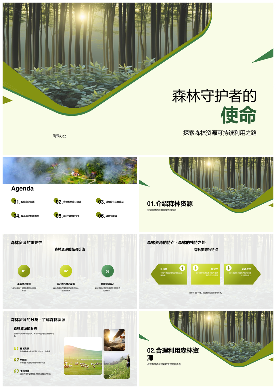 风云办公提供的森林资源保护可持续经营专家官员共护PPT模板,下载格式为pptx,一共29页,作品中文字及图均可以修改和编辑,图片更改请在作品中右键图片并更换,文字修改请直接点击文字进行修改。