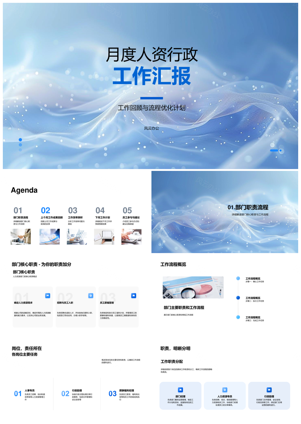 风云办公提供的人资行政工作回顾与流程优化计划汇报PPT模板,下载格式为pptx,一共33页,作品中文字及图均可以修改和编辑,图片更改请在作品中右键图片并更换,文字修改请直接点击文字进行修改。