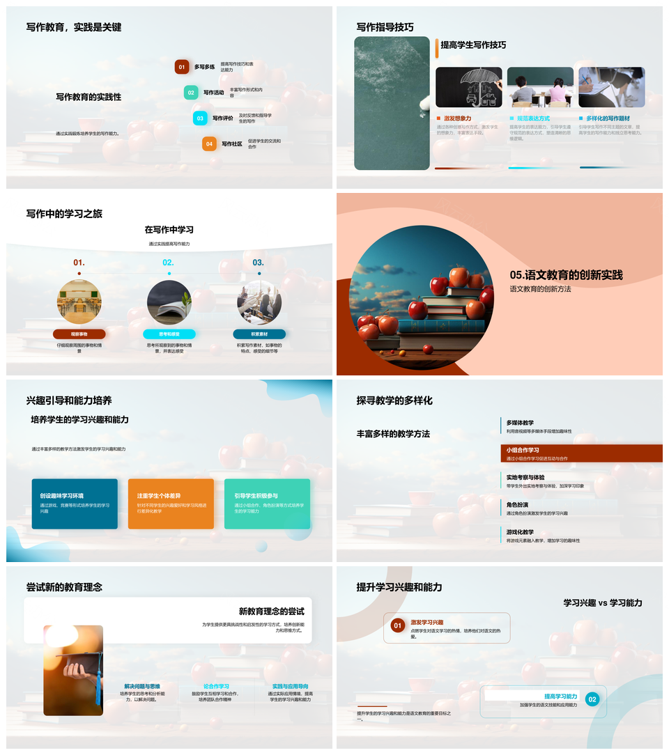 启迪心智语文教育自主阅读写作实践开书PPT模板推荐