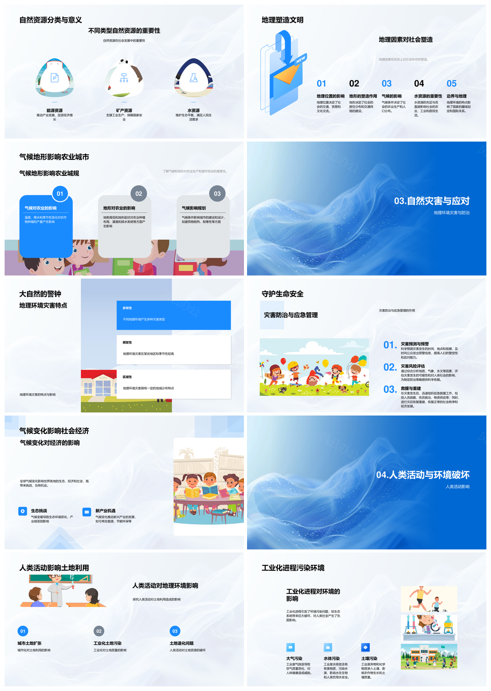风云办公提供的地理环境与人类可持续发展互动PPT模板,下载格式为pptx,一共24页,作品中文字及图均可以修改和编辑,图片更改请在作品中右键图片并更换,文字修改请直接点击文字进行修改。