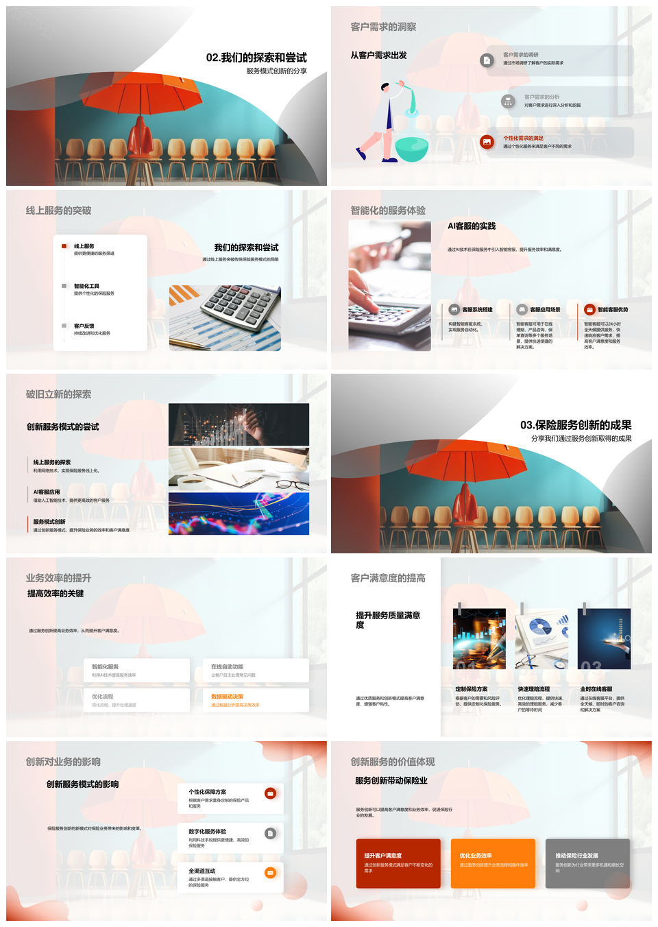 这是一张创新引领保险服务AI智能客服提升体验PPT模板,包含创新、引领、保险、服务、AI、智能、客服、提升、体验等主题内容,也可用作创新引领保险服务、引领保险服务AI、保险服务AI智能、服务AI智能客服、AI智能客服提升、智能客服提升体验、创新引领保险、引领保险服务、保险服务AI、服务AI智能、AI智能客服、智能客服提升、客服提升体验、创新引领、引领保险等PPT场景使用。 风云办公提供的创新引领保险服务AI智能客服提升体验PPT模板,下载格式为pptx,一共28页,作品中文字及图均可以修改和编辑,图片更改请在作品中右键图片并更换,文字修改请直接点击文字进行修改。