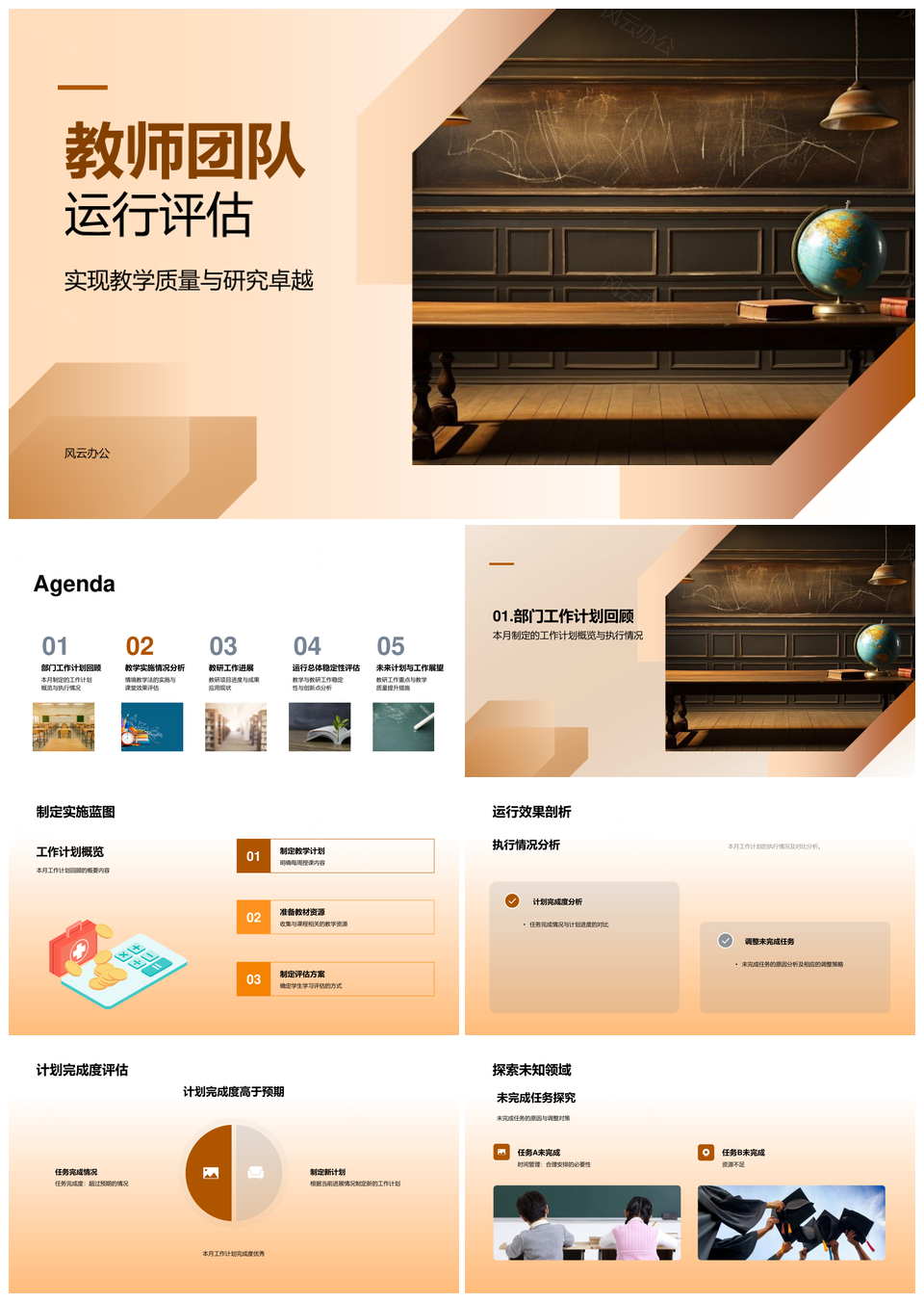 风云办公提供的教师团队教学研究卓越运行评估PPT模板,下载格式为pptx,一共33页,作品中文字及图均可以修改和编辑,图片更改请在作品中右键图片并更换,文字修改请直接点击文字进行修改。