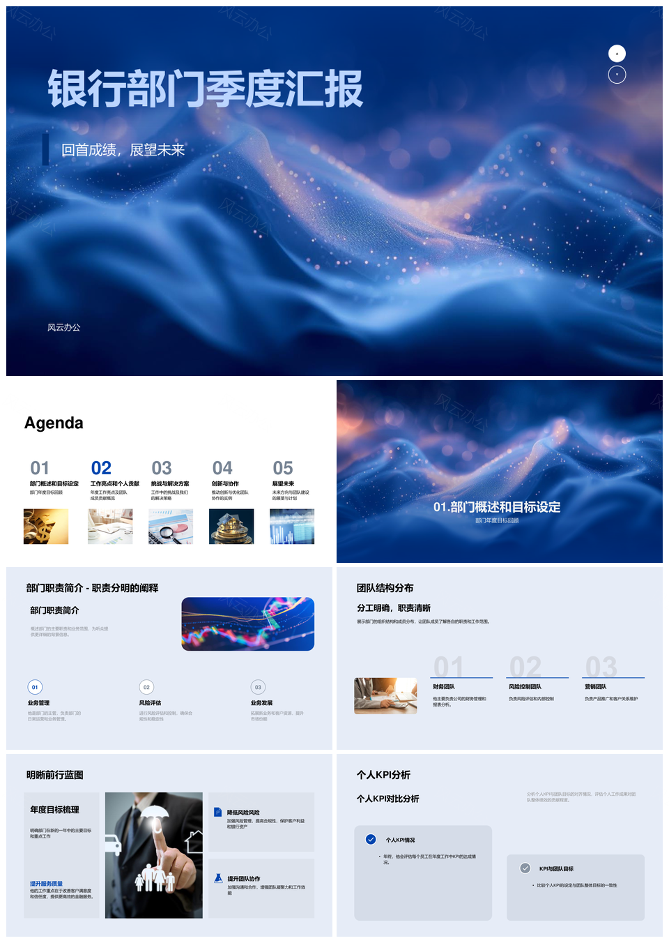 银行部门季度汇报职责结构目标KPI成果亮点PPT模板推荐