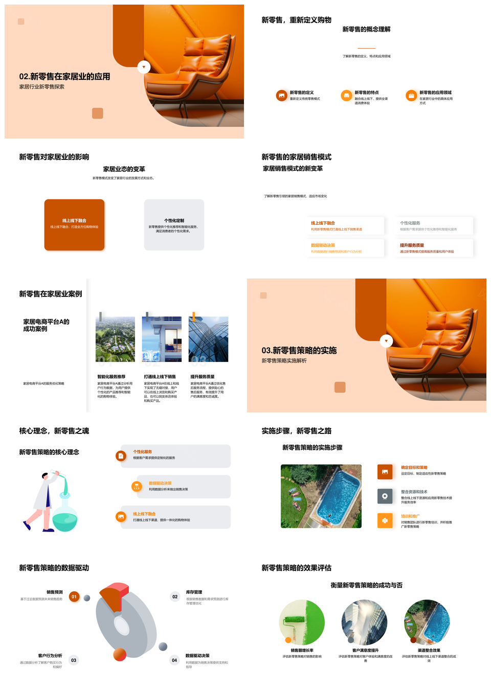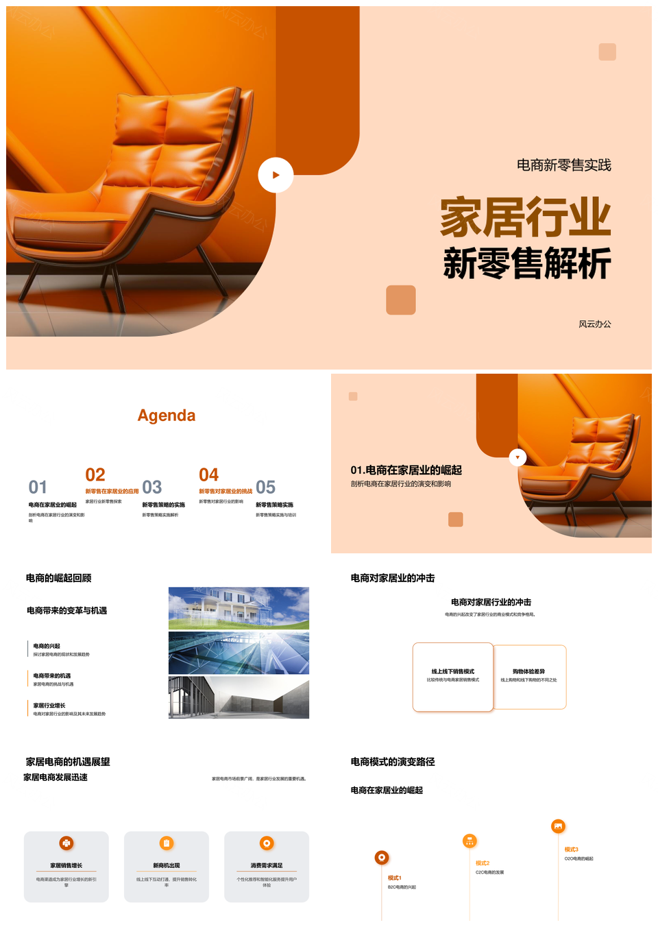 风云办公提供的家居行业新零售电商销售策略实践解析PPT模板,下载格式为pptx,一共28页,作品中文字及图均可以修改和编辑,图片更改请在作品中右键图片并更换,文字修改请直接点击文字进行修改。