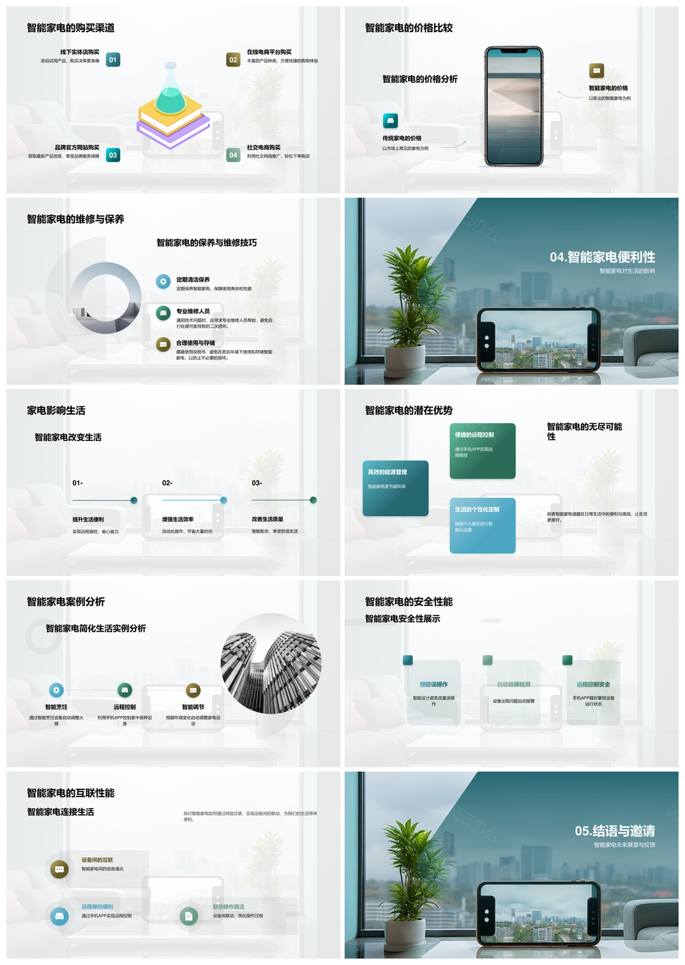 本模板以现代极简美学为基底,巧妙融合自然与科技元素。左侧运用高清室内绿植实景素材构建呼吸感空间,右侧以量子力学的波粒二象性为灵感,通过激光线条与渐变色块抽象演绎光能转化机制。首页独创双视窗版式,科学示意图与生态实景分屏呈现,图表页采用光学粒子动效诠释数据逻辑。设置半透明叶脉纹样衬底强化自然主题,渐变激光网格系统精准统合多维度信息,特别适合智能家居方案汇报,生态科技论坛及新型照明设备发布会等场景,兼顾专业性与视觉创新。