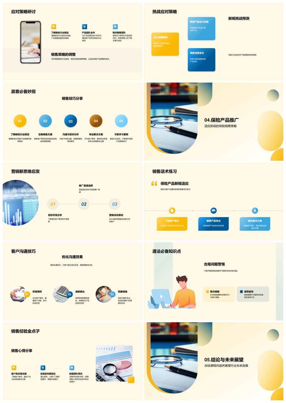 风云办公提供的保险新规下产品设计与销售策略PPT模板,下载格式为pptx,一共33页,作品中文字及图均可以修改和编辑,图片更改请在作品中右键图片并更换,文字修改请直接点击文字进行修改。