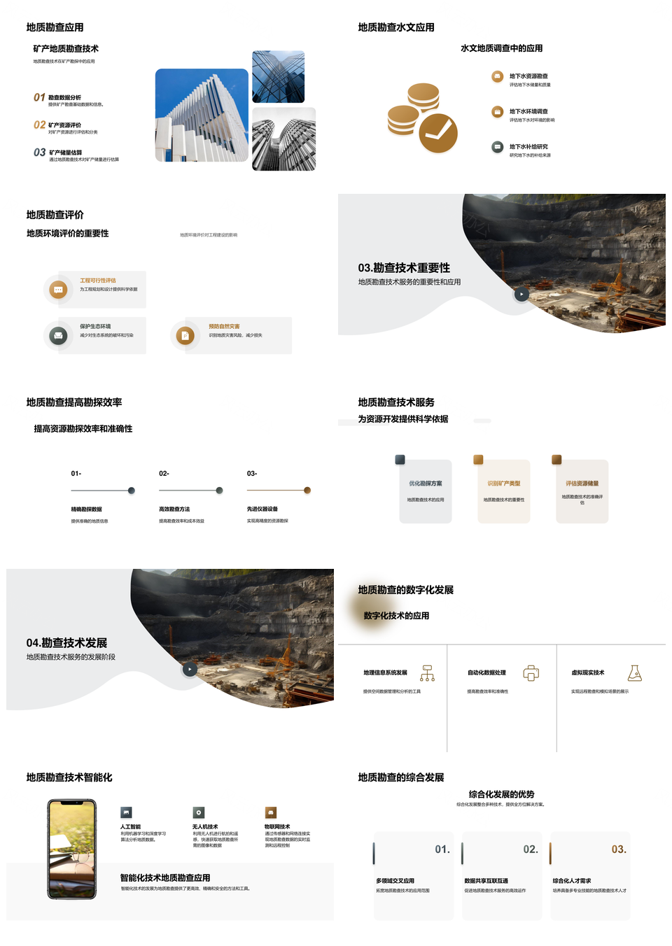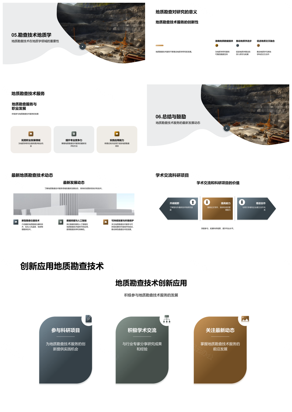 这是一张地质勘查技术应用发展揭示世界地质奥秘PPT模板,包含地质勘查、技术、应用、发展、揭示、世界、地质、奥秘等主题内容,也可用作地质勘查技术应用、勘查技术应用发展、技术应用发展揭示、应用发展揭示世界、发展揭示世界地质、揭示世界地质奥秘、地质勘查技术、勘查技术应用、技术应用发展、应用发展揭示、揭示世界地质、世界地质奥秘、地质勘查、勘查技术、技术应用等PPT场景使用。 风云办公提供的地质勘查技术应用发展揭示世界地质奥秘PPT模板,下载格式为pptx,一共25页,作品中文字及图均可以修改和编辑,图片更改请在作品中右键图片并更换,文字修改请直接点击文字进行修改。