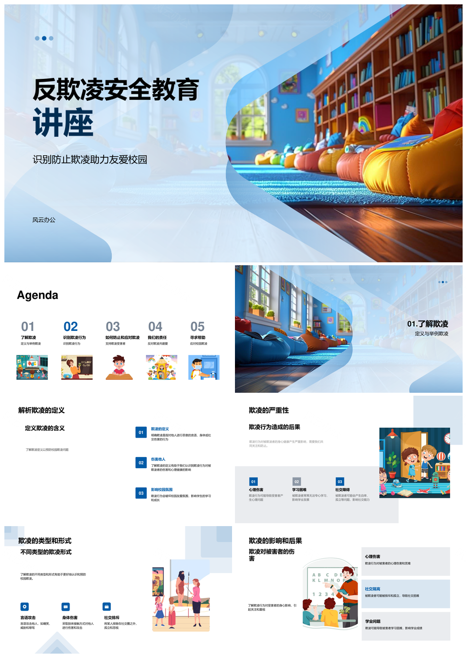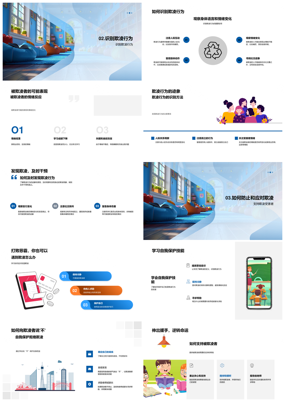 2025校园反欺凌安全教育友爱识别自我保护讲座PPT模板推荐