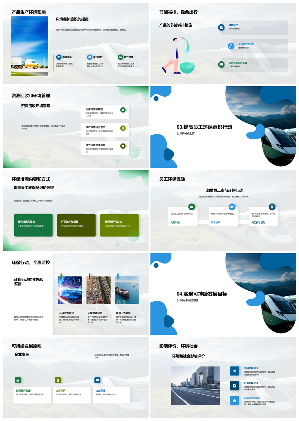 风云办公提供的铁路机车绿色创新促环保可持续发展PPT模板,下载格式为pptx,一共27页,作品中文字及图均可以修改和编辑,图片更改请在作品中右键图片并更换,文字修改请直接点击文字进行修改。