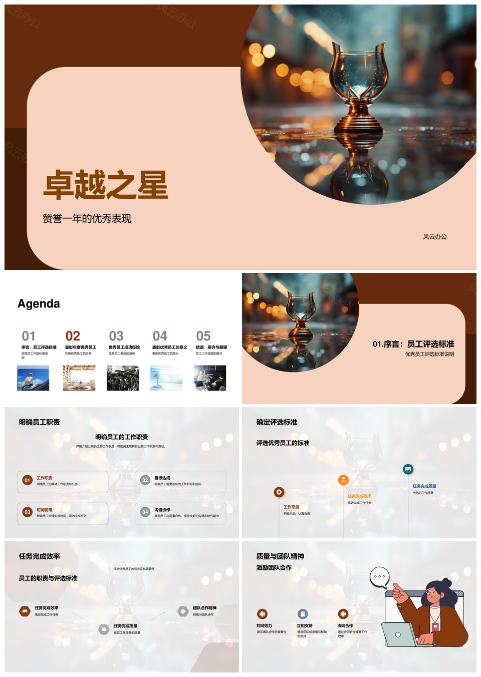 2025年会公正评选优秀员工颁发奖杯荣誉瞬间PPT模板