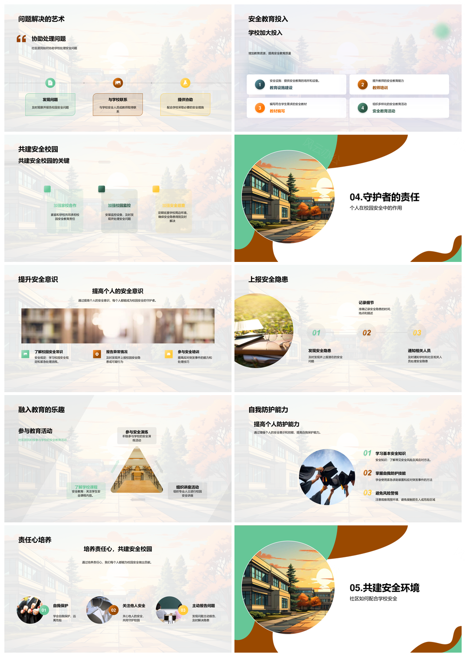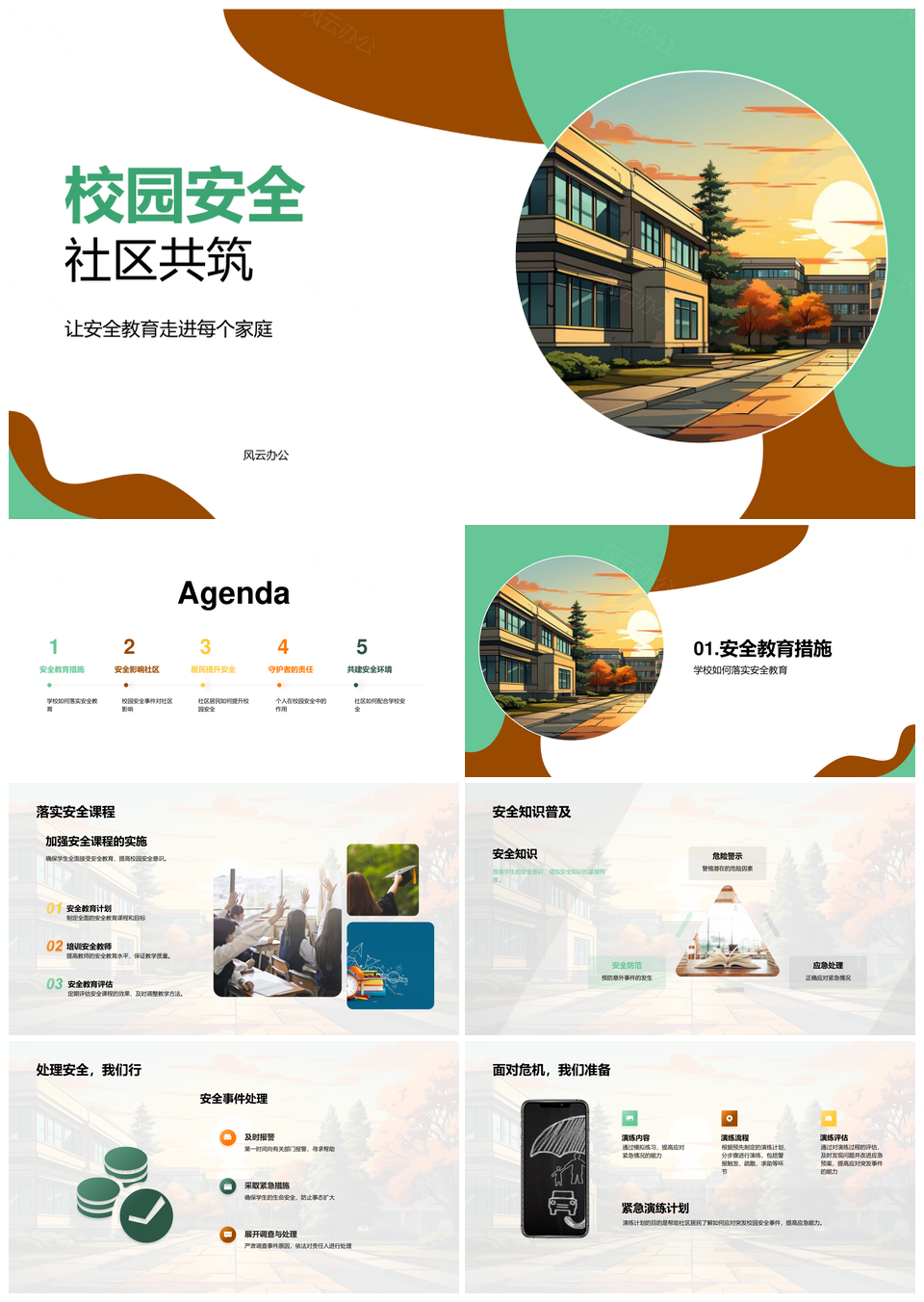 风云办公提供的校园安全社区共筑教育演练提升意识PPT模板,下载格式为pptx,一共33页,作品中文字及图均可以修改和编辑,图片更改请在作品中右键图片并更换,文字修改请直接点击文字进行修改。
