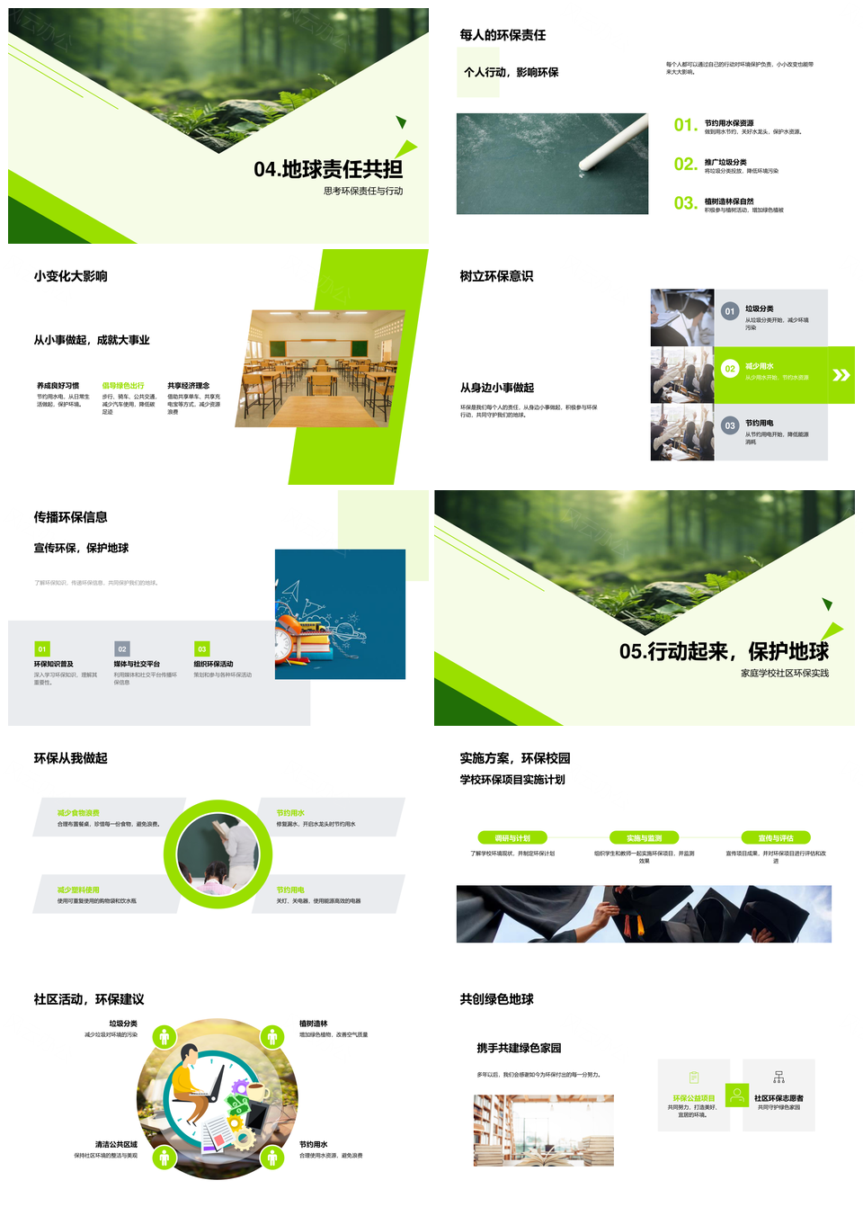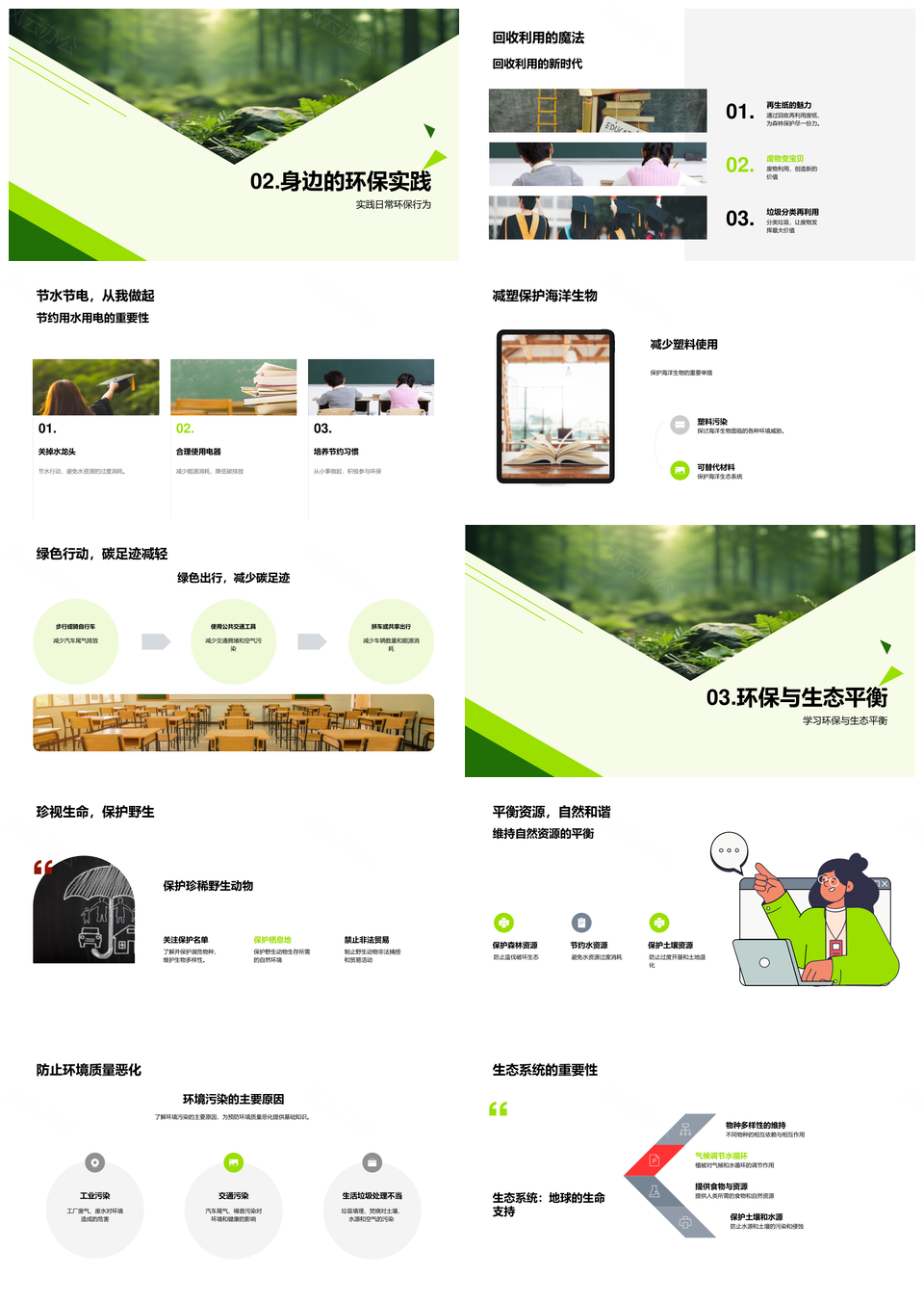 这是一张绿色行动环保节能减塑回收护生态PPT模板,包含绿色行动、环保、节能、减塑、回收、生态等主题内容,也可用作绿色行动环保节能、行动环保节能减塑、环保节能减塑回收、节能减塑回收护生态、绿色行动环保、行动环保节能、环保节能减塑、节能减塑回收、减塑回收护生态、绿色行动、行动环保、环保节能、节能减塑、减塑回收、回收护生态等PPT场景使用。