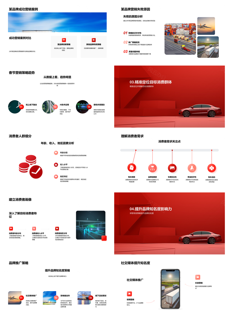 风云办公提供的春节汽车AI大数据优化品牌社交营销PPT模板,下载格式为pptx,一共23页,作品中文字及图均可以修改和编辑,图片更改请在作品中右键图片并更换,文字修改请直接点击文字进行修改。