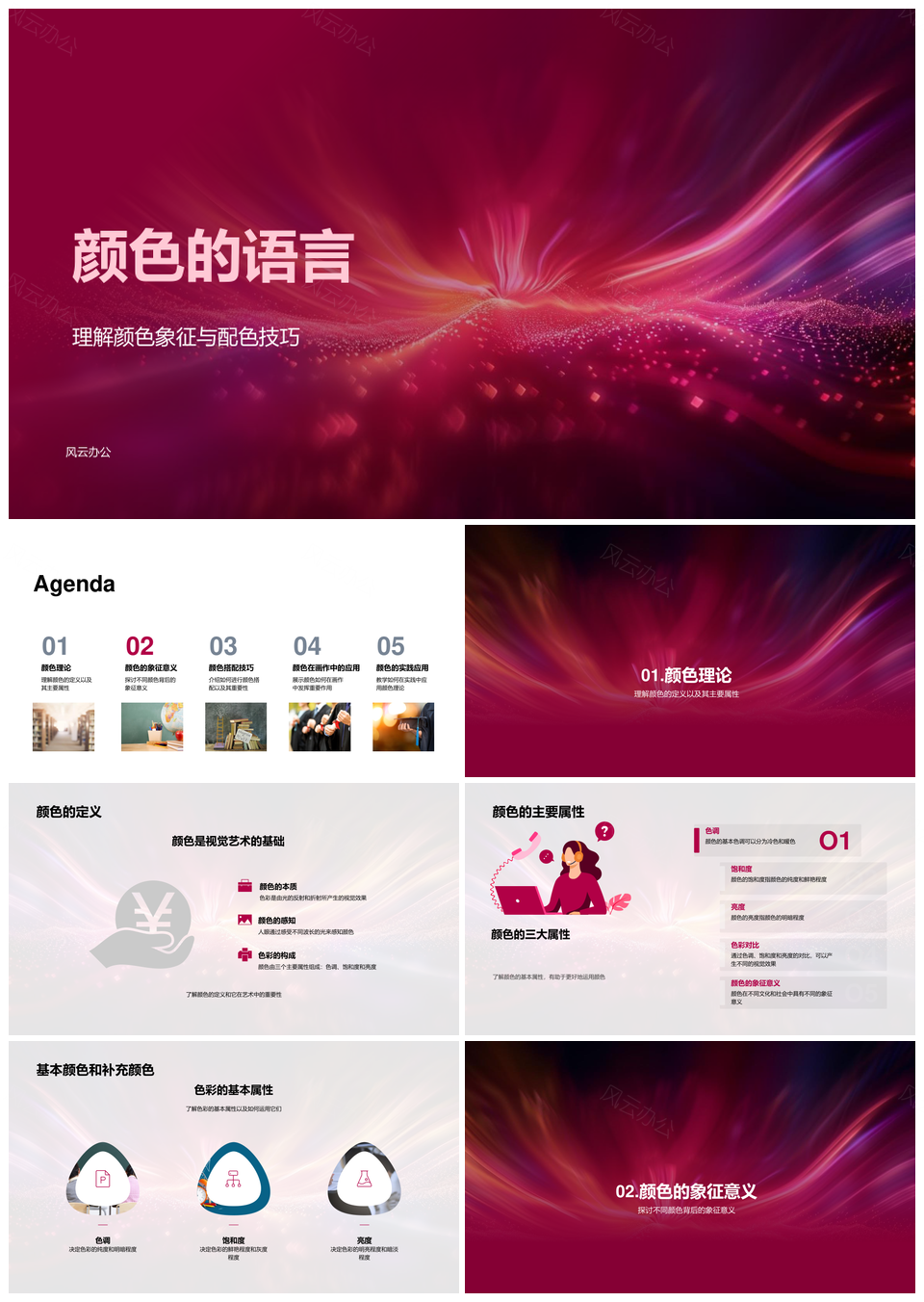 颜色语言象征理论配色技巧色调饱和度亮度PPT模板推荐